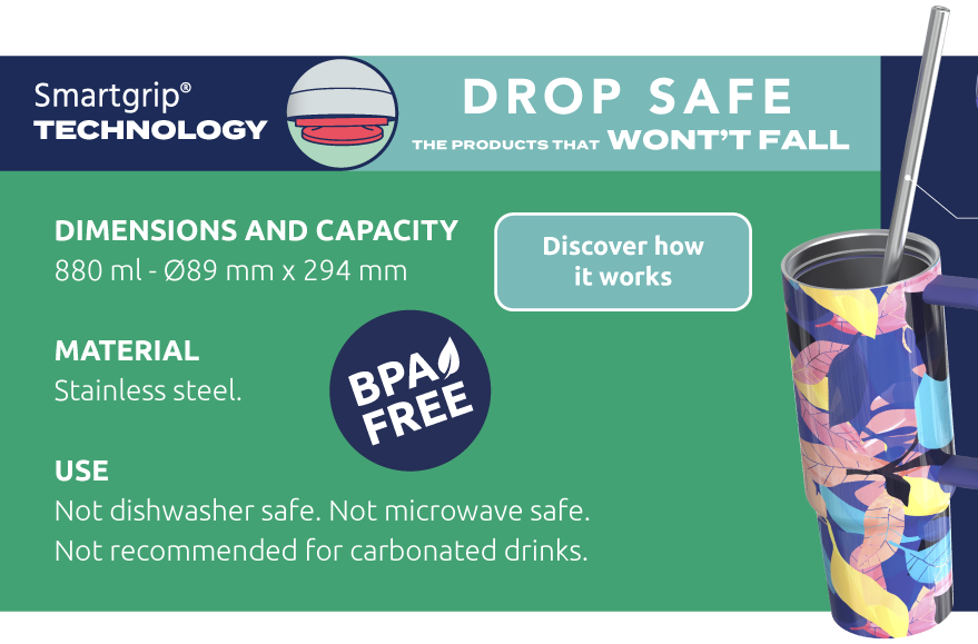 Quokka Vibe je součástí kolekce hrnků Drop Safe se speciálním dnem Smartgrip®, které při postavení na hladký povrch brání převržení a nechtěnému vylití obsahu hrnku.