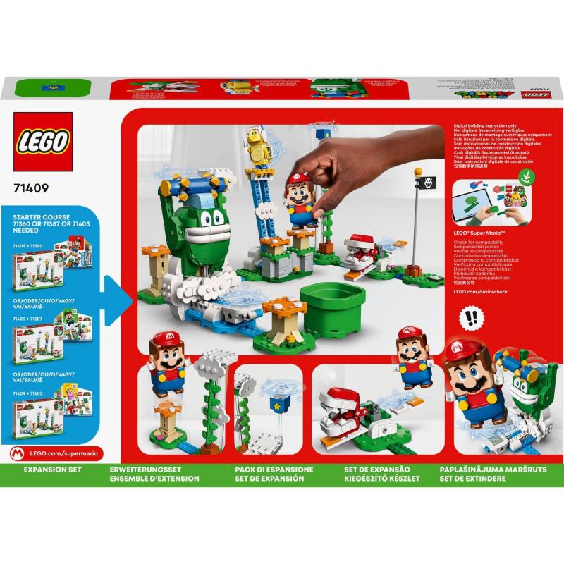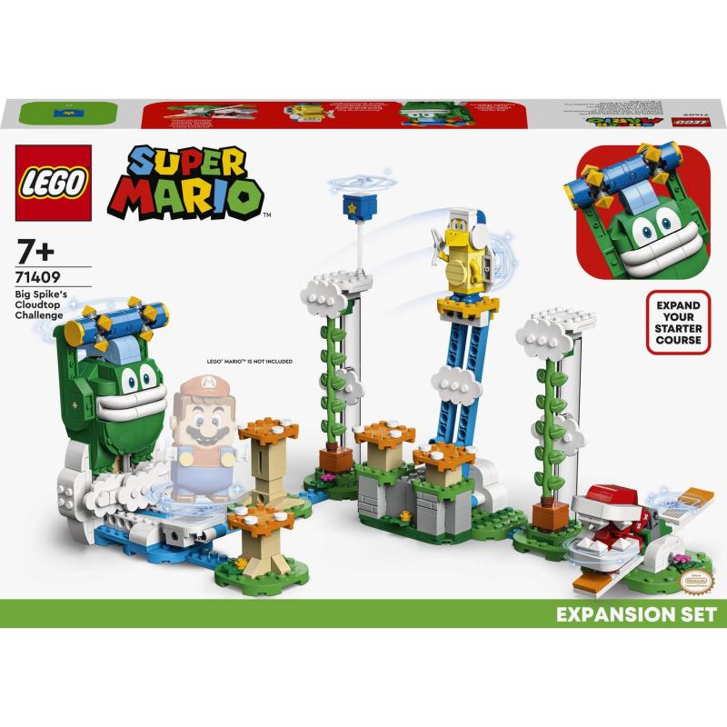 S rozširujúcim setom LEGO® Super Mario™ Oblačná výzva s Veľkým Spikeom (71409) si deti môžu psotaviť vlastný herný level v oblakoch. Set obsahuje typické prekážky z videohier Super Mario™ a 3 figúrky LEGO známych protivníkov –Veľkého Spikea, Boomerang Broa a piraňovú rastlinku. Hráči majú za úlohy pomôcť LEGO® Mariovi, LEGO® Luigimu alebo LEGO® Peach (nie sú súčasťou setu) poraziť Veľkého Spikea, dostať sa k Boomerang Broovi skokom z oranžových trampolín v tvare huby, získať akčnú kocku Super Star a mnoho ďalšieho. Ich snaha bude odmenená bohatým množstvom digitálnych mincí. (Poznámka: Pre plnohodnotný herný zážitok sa vyžaduje štartovací set 71360, 71387 alebo 71403.) Sprievodná aplikácia Stiahnite si aplikáciu LEGO Super Mario – obsahuje návody na stavanie, inšpiratívne tipy a ďalší zábavný obsah pre ešte intenzívnejší zážitok z hier. Ten najlepší darček Tento set predstavujte úžasný darček pre deti udávajúce trendy od 7 rokov a je ideálnou voľbou na samostatné hry i zábavu s kamarátmi. Štartovacie a rozširujúce sety LEGO Super Mario umožňujú fanúšikom rozširovať, prestavovať a vytvárať jedinečné levely a tráviť dlhé hodiny zábavným zbieraním mincí.