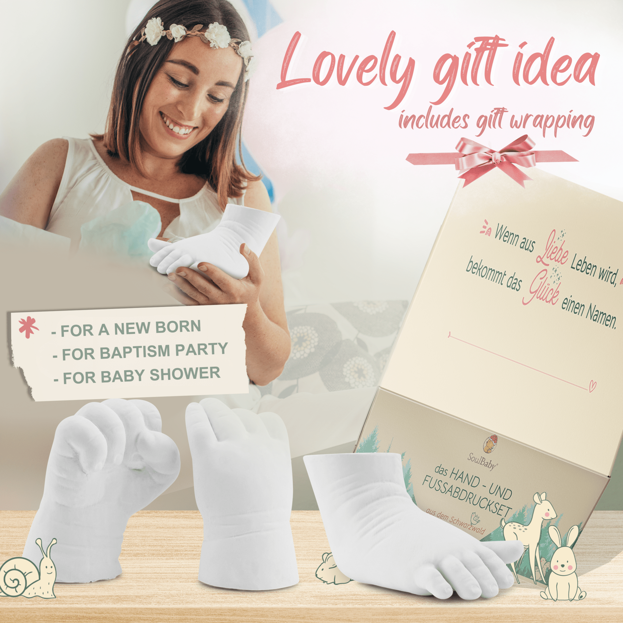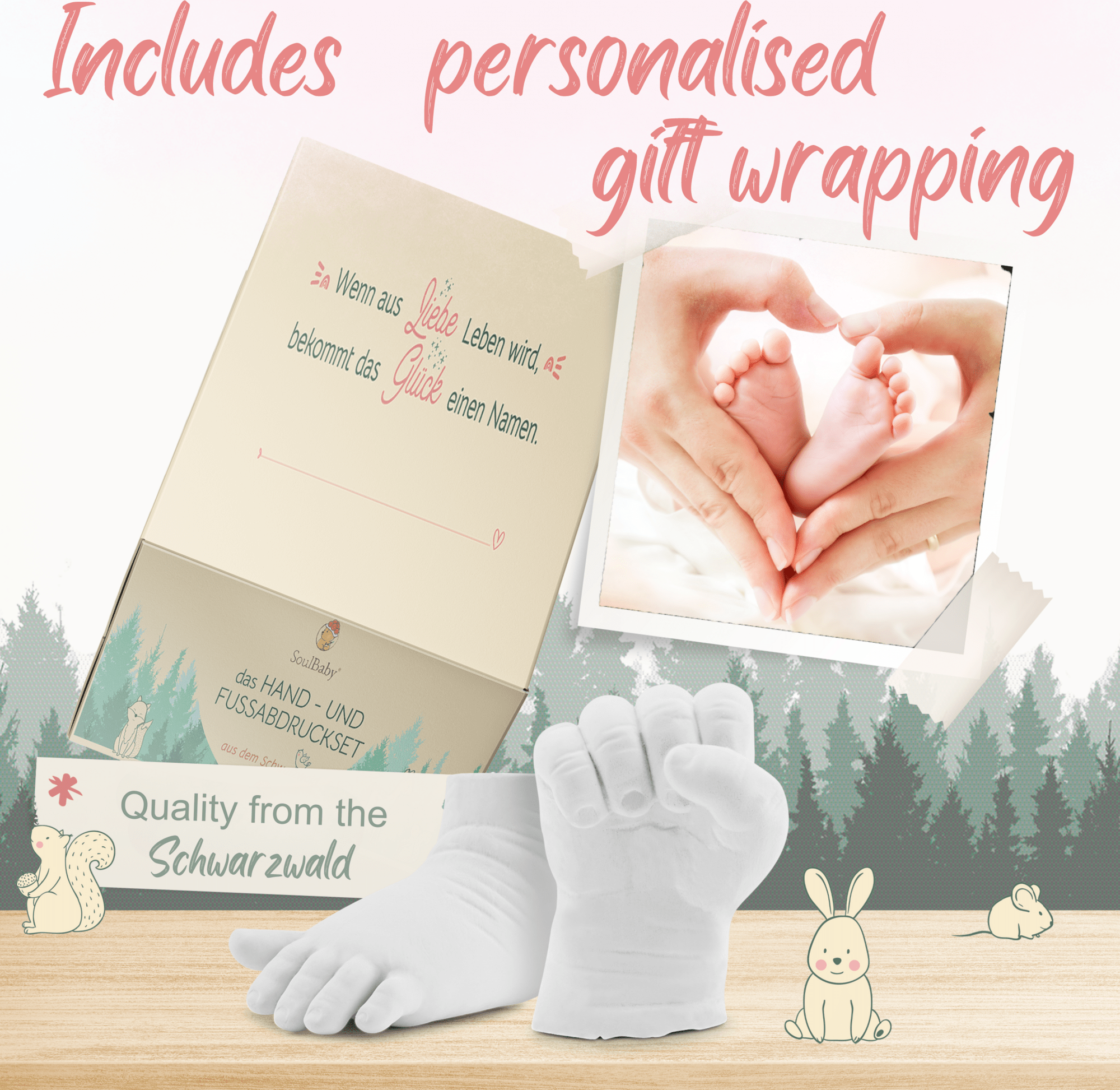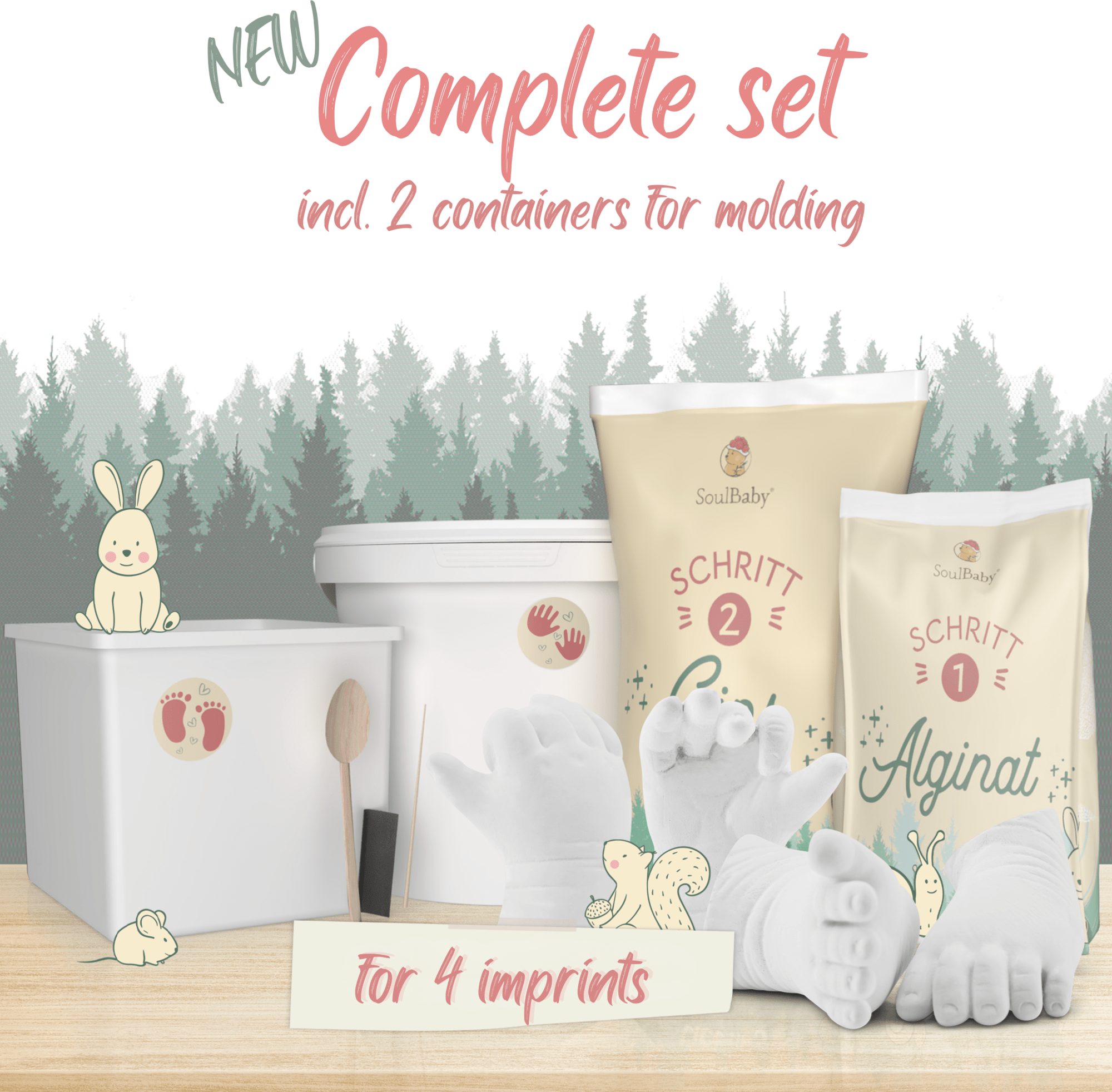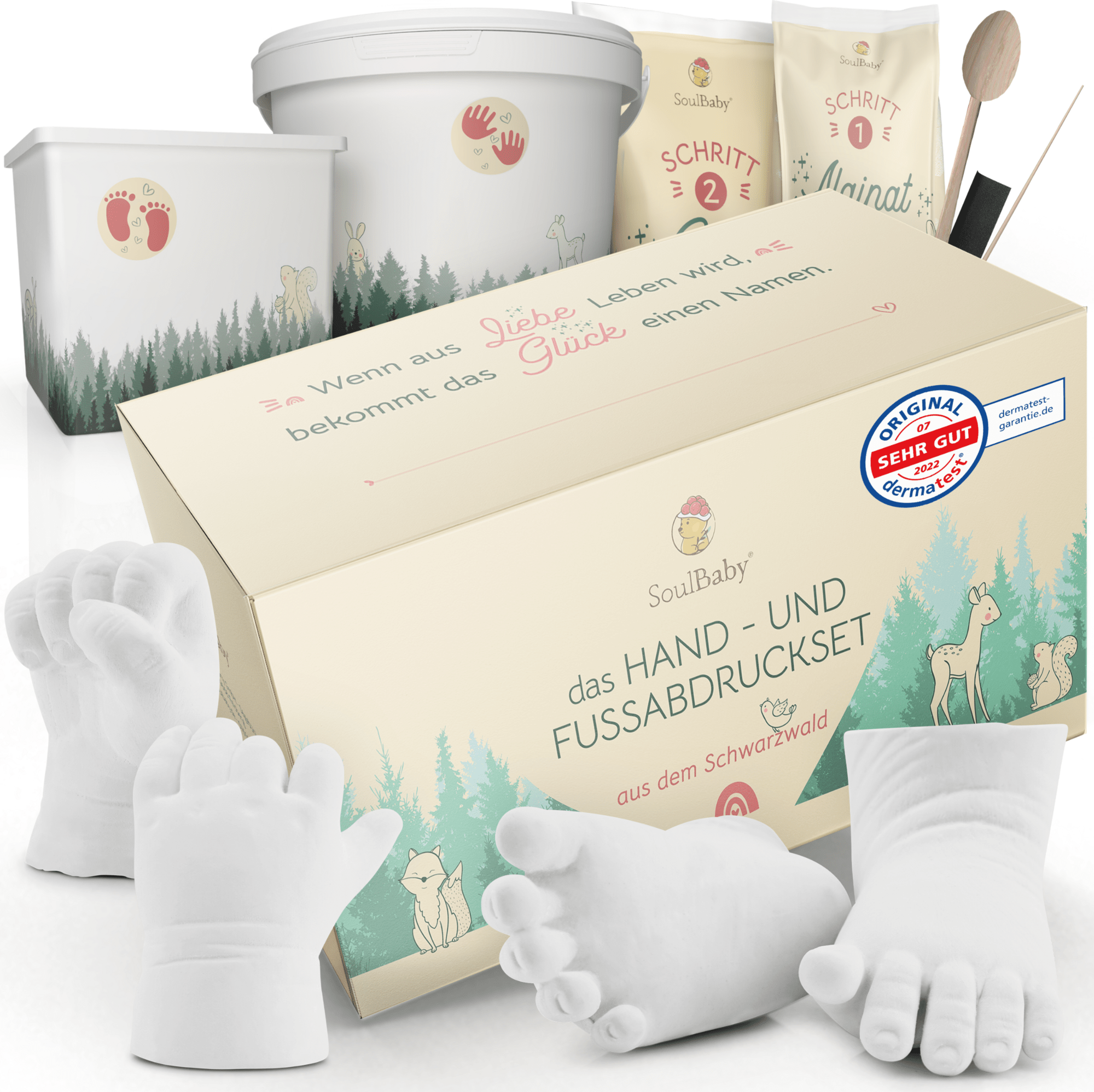 Kompletná sada - sadrová sada pre bábätko obsahuje 2 nádoby na odlievanie viacerých sadrových odliatkov ručičky a nožičky bábätka- všetko potrebné je v sade Testované a vyrobené v Nemecku – šetrné k pokožke, vhodné pre detskú jemnú pokožku - materiály sú dermatologicky testované v Nemecku Jednoducho a bezpečne - podrobné pokyny krok za krokom, video pokyny Obsahuje darčekové balenie – vhodné ako darček pre bábätko - pre novorodenca - chlapčeka alebo dievčatko – darček pre bábätko, ktorý vytvorí skvelé spomienky