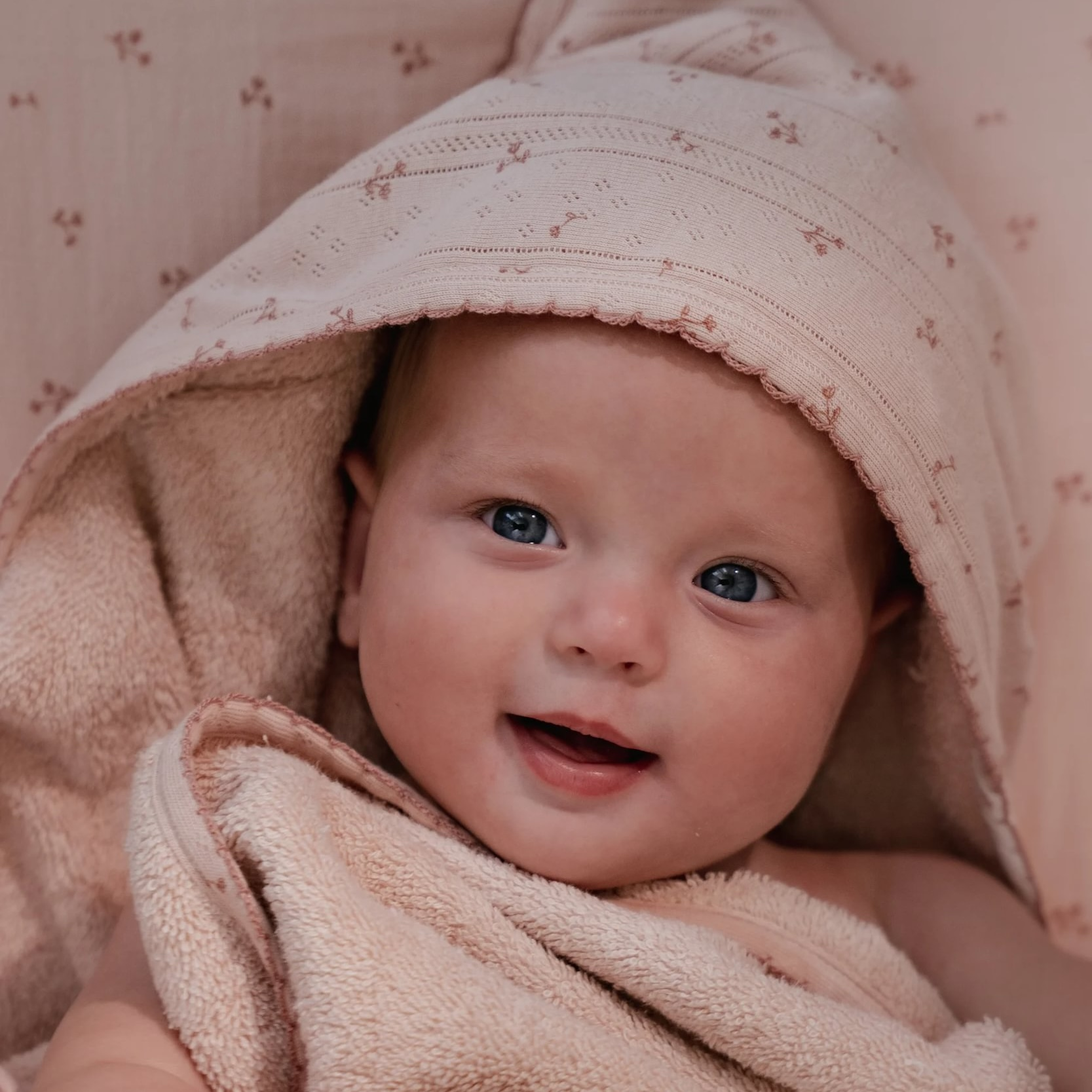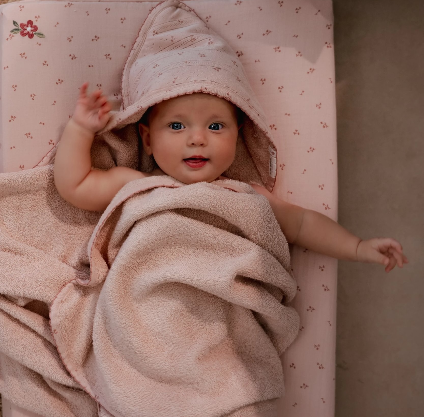 Mäkká froté osuška s kapucňou z jemnej organickej bavlny je ideálna pre ľahké a rýchle osušenie a zabalenie dieťaťa po kúpeli.
