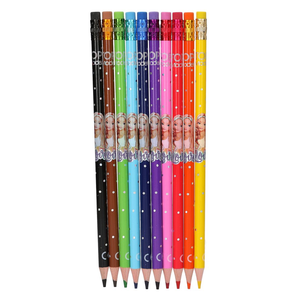 Nádherné farebné pastelky okrúhleho tvaru sa dobre orezávajú a ľahko sa s nimi kreslí a vyfarbuje. Pastelky v atraktívnom dizajne mimoriadne obľúbenej značky Top Model nájdu kreatívne využitie v škole aj doma! Súčasťou je aj guma na každej pastelke v rovnakej farbe. 10 atraktívnych farieb. Tieto pastelky nemôžu chýbať žiadnej kreatívnej maliarke!