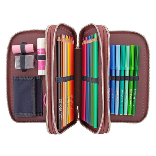 Praktický trojposchodový školský peračník vyrobený z kvalitného materiálu odolného proti bežnému opotrebovaniu.