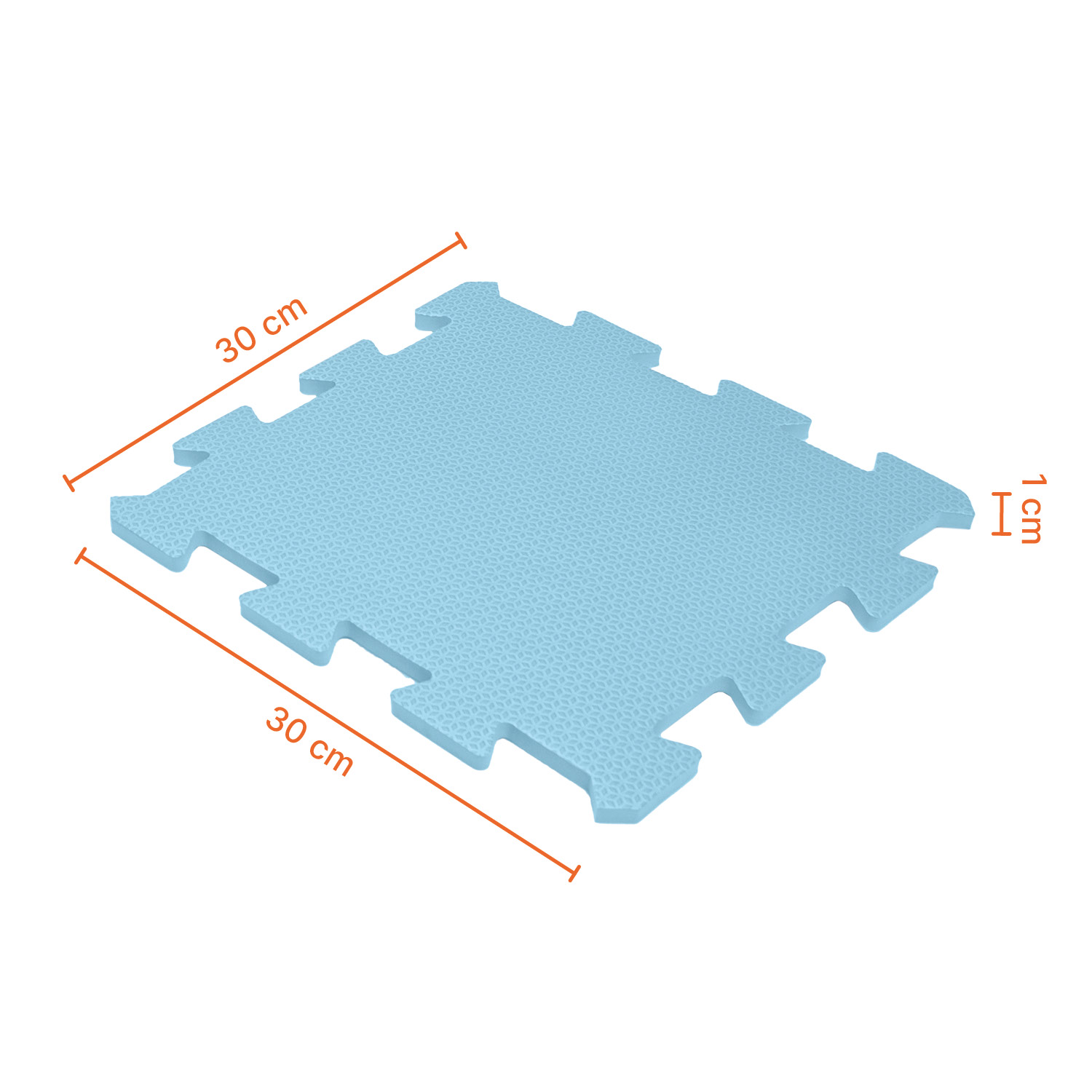 Jednotlivé dlaždice 30 × 30 cm (9 ks) do seba perfektne zapadajú. Podložka je vhodná pre deti od narodenia, vyrobená z nezávadného a príjemného materiálu.