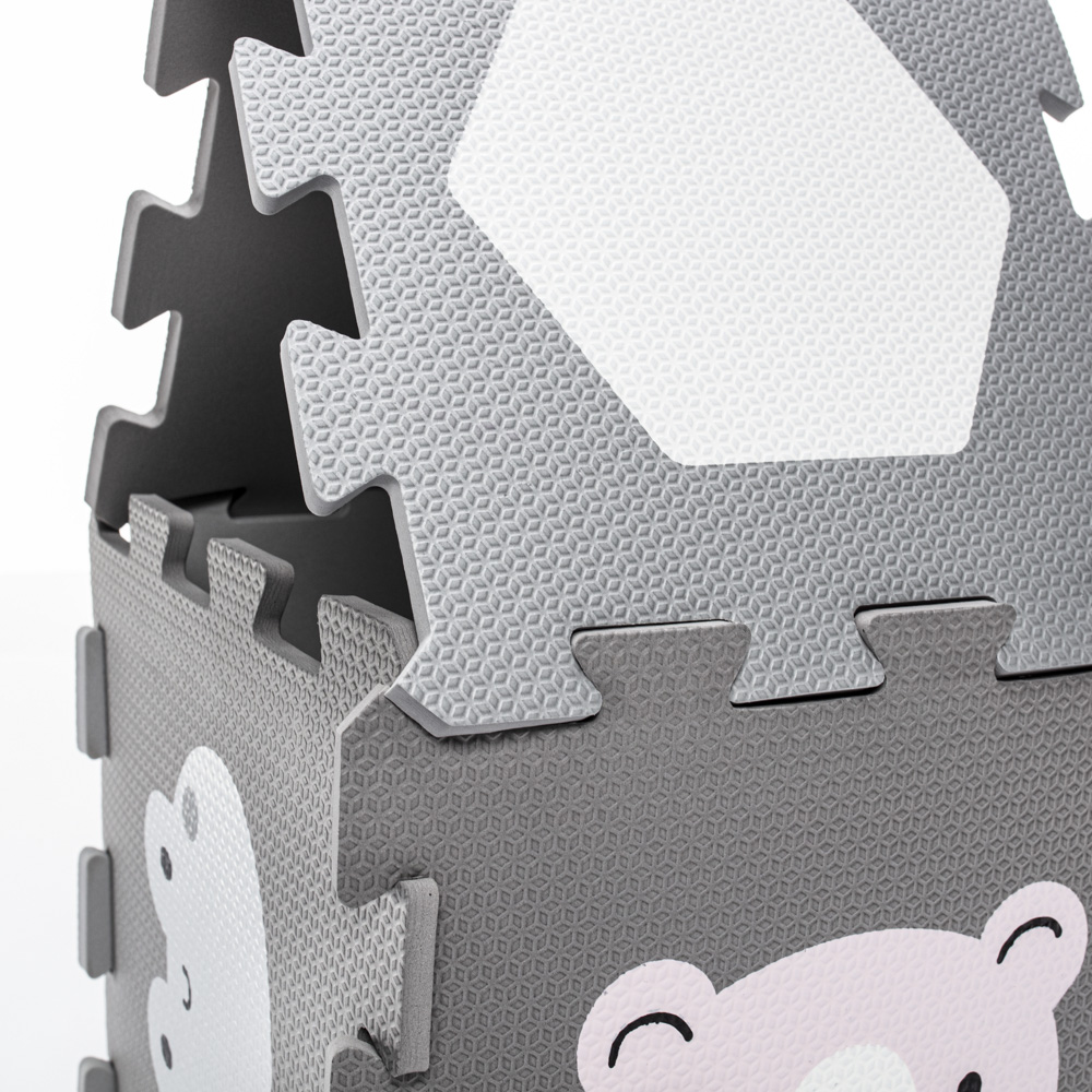 Jednotlivé dlaždice 30 × 30 cm (9 ks) do seba perfektne zapadajú. Podložka je vhodná pre deti od narodenia, vyrobená z nezávadného a príjemného materiálu.