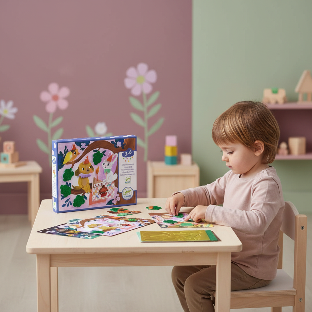 Penové koláže Trblietavé oslavy Trblietavá oslava na štyroch obrázkoch: nalep penové dieliky a nechaj scénu zažiariťPenové koláže – Trblietavé oslavy sú kreatívna sada, v ktorej deti vytvoria 4 rozprávkovo slávnostné obrázky lepením metalických a trblietavých penových samolepiek.Je to hravá „mozaika“ bez farieb a bez neporiadku – dieťa len vyberá správne tvary a postupne dopĺňa scénu, až kým sa obrázok úplne nerozžiari.Rýchly prehľad odporúčaný vek: od 3 rokov (cca do 6 rokov) čo deti vytvoria: 4 veľké obrázky na doplnenie materiál: penové samolepky s metalickým a trblietavým efektom rozvoj: jemná motorika, presnosť, sústredenie, farby a tvaryObsah balenia 4 veľké obrázky na doplnenie 8 hárkov penových samolepiek (metalické a trblietavé) 1 obrázkový návod krok za krokomAko to funguje Dieťa si vyberie obrázok a riadi sa vizuálnou predlohou v návode. Vyberá penové samolepky a lepí ich na určené miesta. Postupne doplní detaily – a scéna získa trblietavý efekt.Pre koho je pre deti, ktoré milujú samolepky a tvorenie s rýchlym výsledkom ako darček na tvorivé popoludnie alebo „oslávnu“ aktivitu pre rodičov, ktorí chcú pekné tvorenie bez farieb a veľkého upratovania