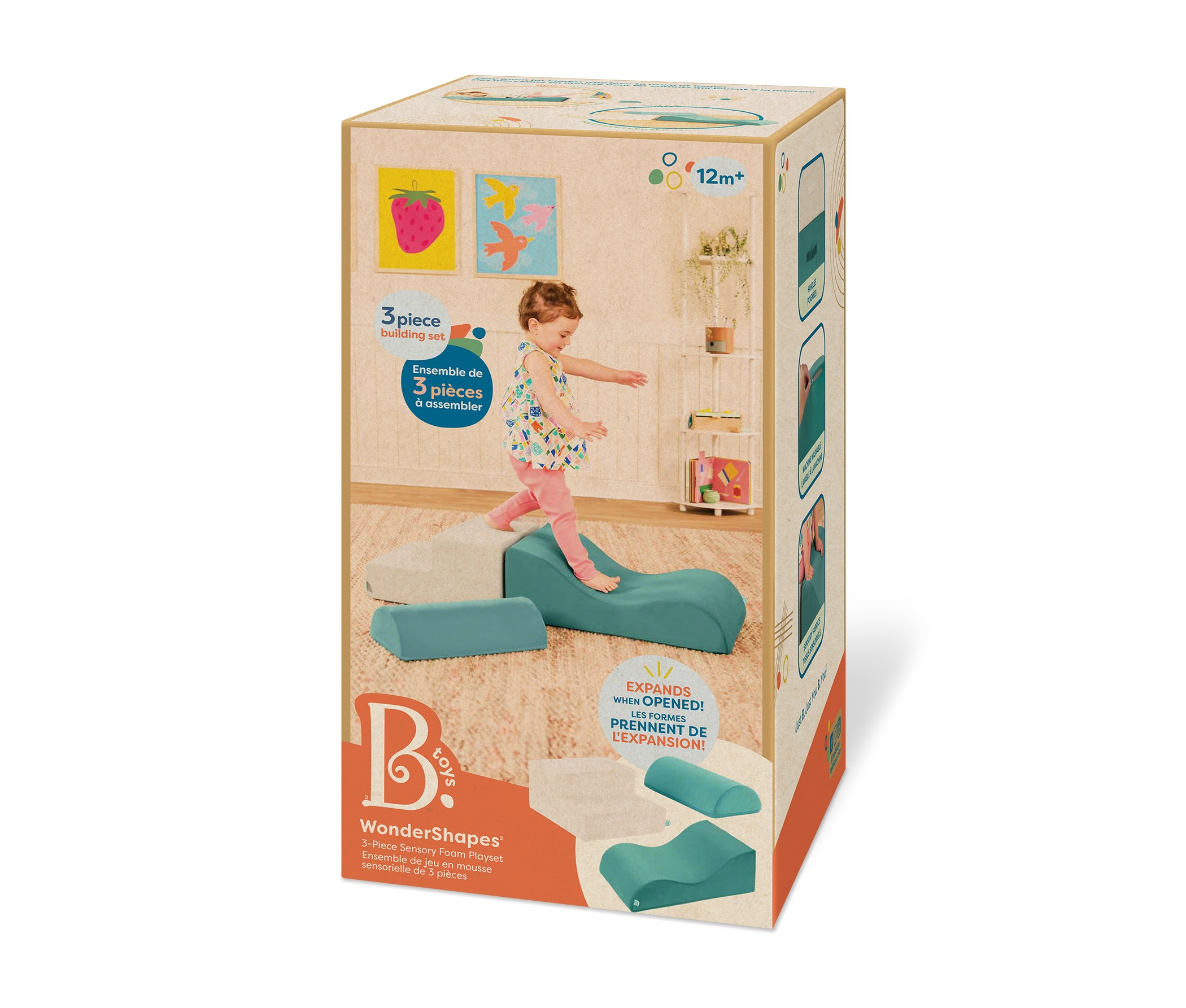3-dielna sada penových tvarov WonderShapes premení každú detskú izbu alebo herňu na zábavné ihrisko plné fantázie. Obsahuje schodíky, vlnitú rampu a polvalec – ideálny na tvorbu prekážkových dráh, preliezačiek aj kreatívnych stavieb. Po rozbalení sa jednotlivé diely samy roztiahnu do plnej veľkosti – ako kúzlom! Vďaka držadlám si deti môžu svoje ihrisko prestavovať podľa chuti, zatiaľ čo mäkké poťahy zaistia pohodlie aj bezpečnosť.