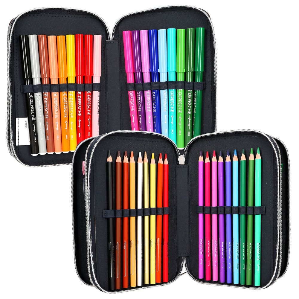 Praktický trojposchodový školský peračník vyrobený z kvalitného materiálu odolného proti bežnému opotrebovaniu. Jedinečná náplň peračníka ponúka - 2 ceruzky, 18 pasteliek, 18 fixiek, nožnice, lepidlo, pravítko, strúhadlo, gumu a zrkadlo. Peračník ponúka dostatočný vnútorný priestor postačujúci potrebám mladších i starších školáčok.Spoľahlivé bezporuchové zapínanie na zips a originálny štýlový dizajn značky Miss Melody vytvorili z tohto peračníka obľúbenú školskú pomôcku.Materiálové zloženie: 100% polyester.Rozmery peračníka: 20 x 13 x 7,5 cm.Vhodné pre deti od 3 rokov.