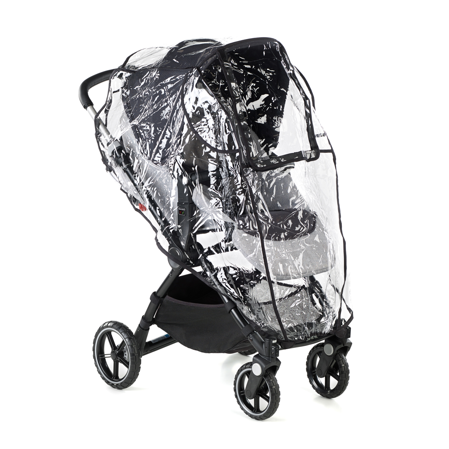 Univerzálna pláštenka je vhodná pre väčšinu kočíkov so športovým sedením. Nastaviteľné okienko, ktoré je možné udržať otvorené zapnutím suchého zipsu na okraji, umožňuje jednoduchú kontrolu dieťaťa.