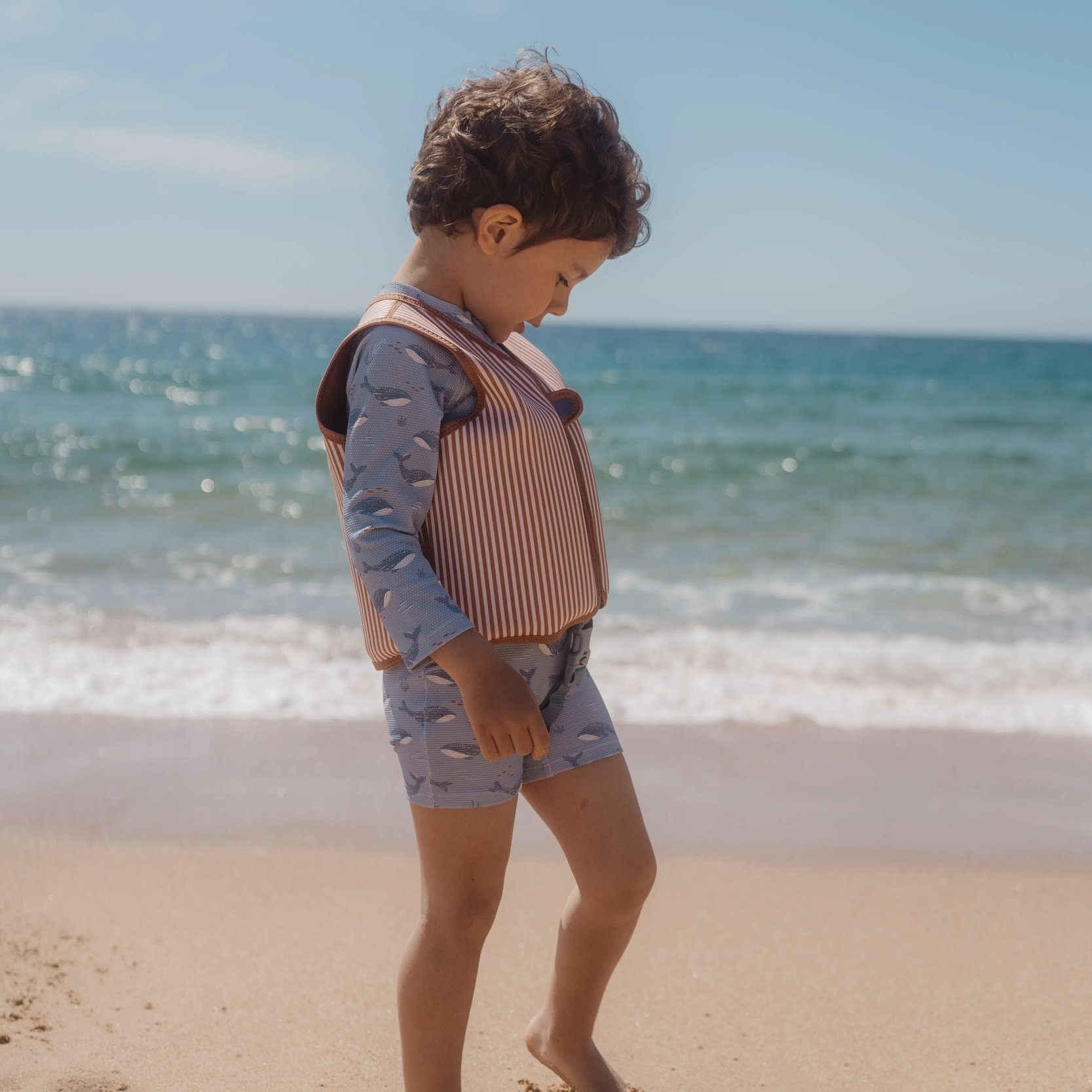 Plávacia vesta s krásnou potlačou motívov zo života pod morskou hladinou pomôže vášmu dieťaťu získať istotu pri plaveckých začiatkoch a zároveň mu zaistí optimálnu voľnosť pohybu. Vďaka zapínaniu na zips sa vesta z príjemného neoprénového materiálu ľahko oblieka a vyzlieka.