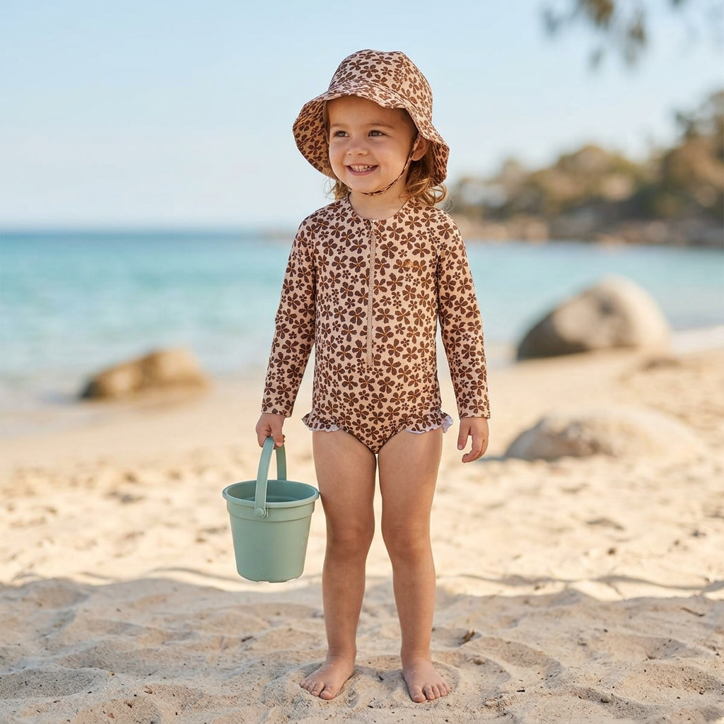 Plavky s dlhým rukávom s UPF 50+ Wild Flower Detské UV plavky s dlhým rukávom Wild Flower UPF 50+ – ochrana pred slnkom a pohodlie pri vodeDetské plavky s dlhým rukávom Wild Flower od značky Swim Essentials sú praktické detské UV plavky na leto, ktoré spájajú pohodlný strih, ochranu pred slnkom UPF 50+ a jemný kvetinový dizajn. Vďaka dlhým rukávom poskytujú lepšie krytie citlivej detskej pokožky počas hier na pláži, pri bazéne aj na dovolenke pri vode.Plavky sú vyrobené zo 100 % recyklovaného strečového materiálu, ktorý je mäkký, pružný a príjemný na nosenie. Materiál sa dobre prispôsobí pohybu dieťaťa pri plávaní, šantení vo vode aj pri hre na brehu. Tieto plavky s UV ochranou pre deti sú vhodné na aktívne letné dni, keď rodičia hľadajú spojenie ochrany, pohodlia a praktického strihu.Prečo si vybrať detské plavky Swim Essentials Wild Flower UPF 50+ – vysoká ochrana pred slnečným žiarením dlhé rukávy – lepšie krytie ramien a rúk 100 % recyklovaný materiál – pružný, mäkký a príjemný na nosenie praktický strih – vhodné na pláž, bazén aj dovolenku dizajn Wild Flower – jemný kvetinový motív pre letný outfitStrih a rozdiely medzi veľkosťamiPri menších veľkostiach majú plavky patentky v spodnej časti (do veľkosti 98/104), čo uľahčuje obliekanie a prezliekanie. Pri väčších veľkostiach sa strih mení na jednoduchšie vyhotovenie a od veľkosti 122/128 sú plavky bez volánika, čo vytvára čistejší a športovejší vzhľad.Dostupné veľkostiPlavky sú dostupné vo viacerých veľkostiach pre menšie aj väčšie deti, takže si viete vybrať vhodný variant podľa rozmerov dieťaťa.Veľkostná tabuľka62/68 – boky: 45–48 cm – pás: 43–47 cm – hrudník: 45–48 cm74/80 – boky: 47–50 cm – pás: 45–48 cm – hrudník: 48–51 cm86/92 – boky: 50–53 cm – pás: 47–50 cm – hrudník: 48–51 cm98/104 – boky: 52–55 cm – pás: 49–52 cm – hrudník: 51–54 cm110/116 – boky: 59–62 cm – pás: 56–59 cm – hrudník: 60–63 cm122/128 – boky: 61–64 cm – pás: 56–59 cm – hrudník: 61–64 cm134/140 – boky: 63–66 cm – pás: 59–62 cm – hrudník: 64–67 cmOdporúčame vybrať o číslo väčšiu veľkosť, než bežne kupujete.