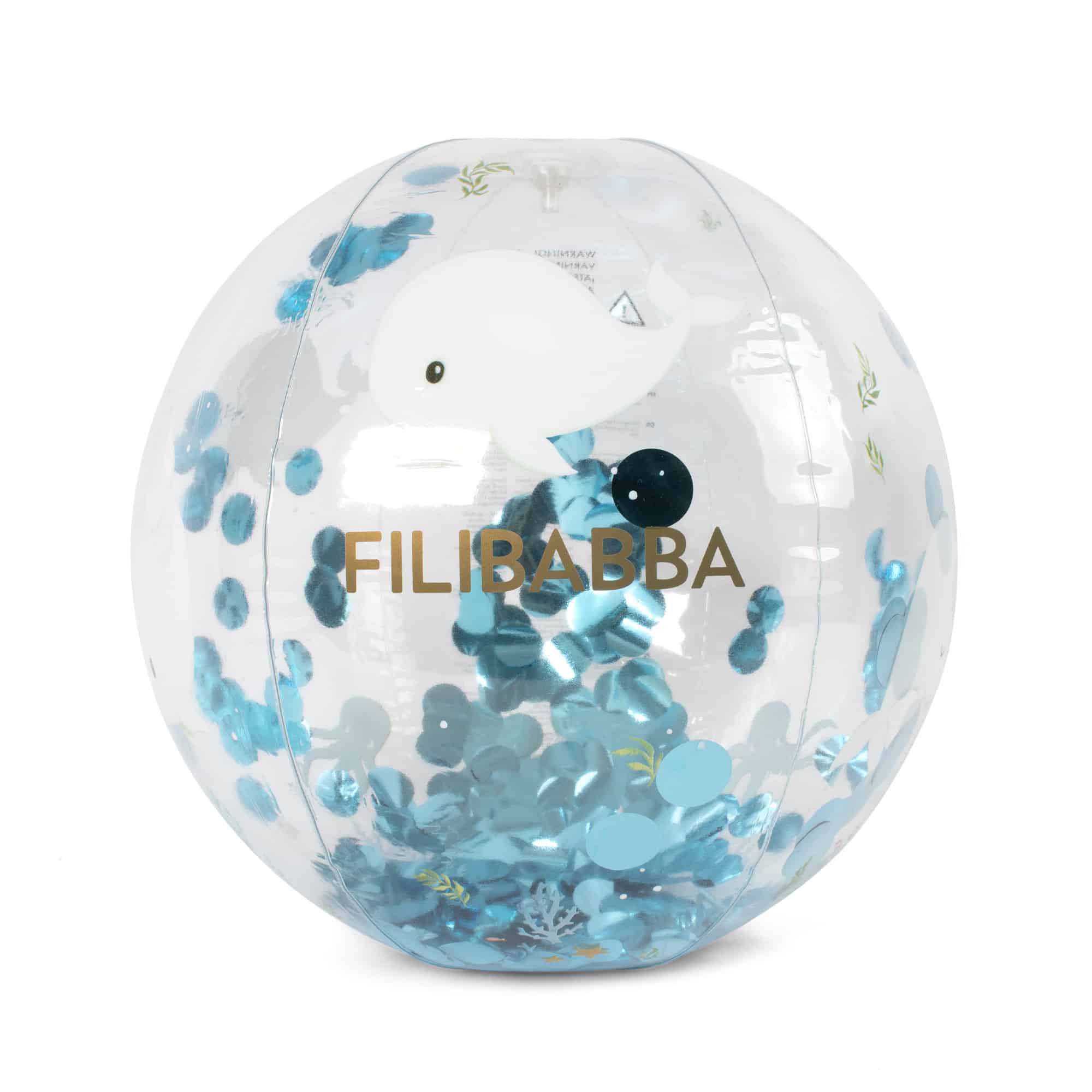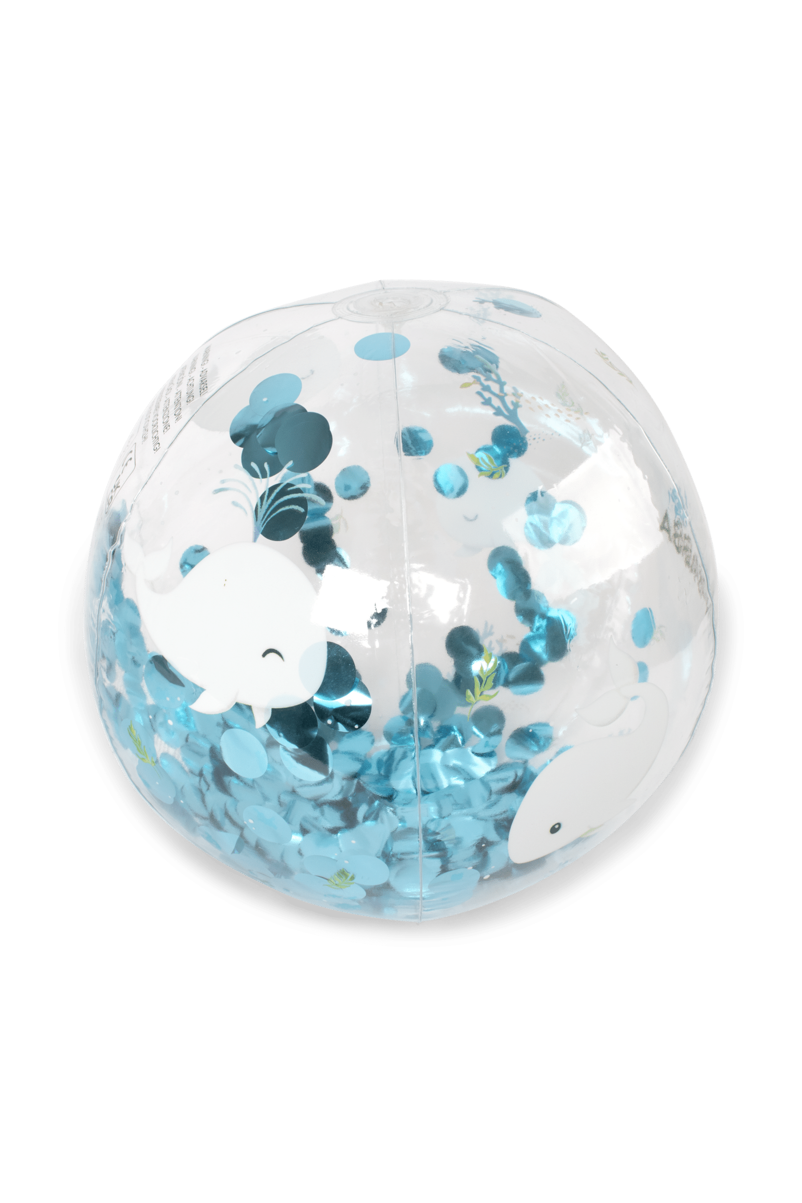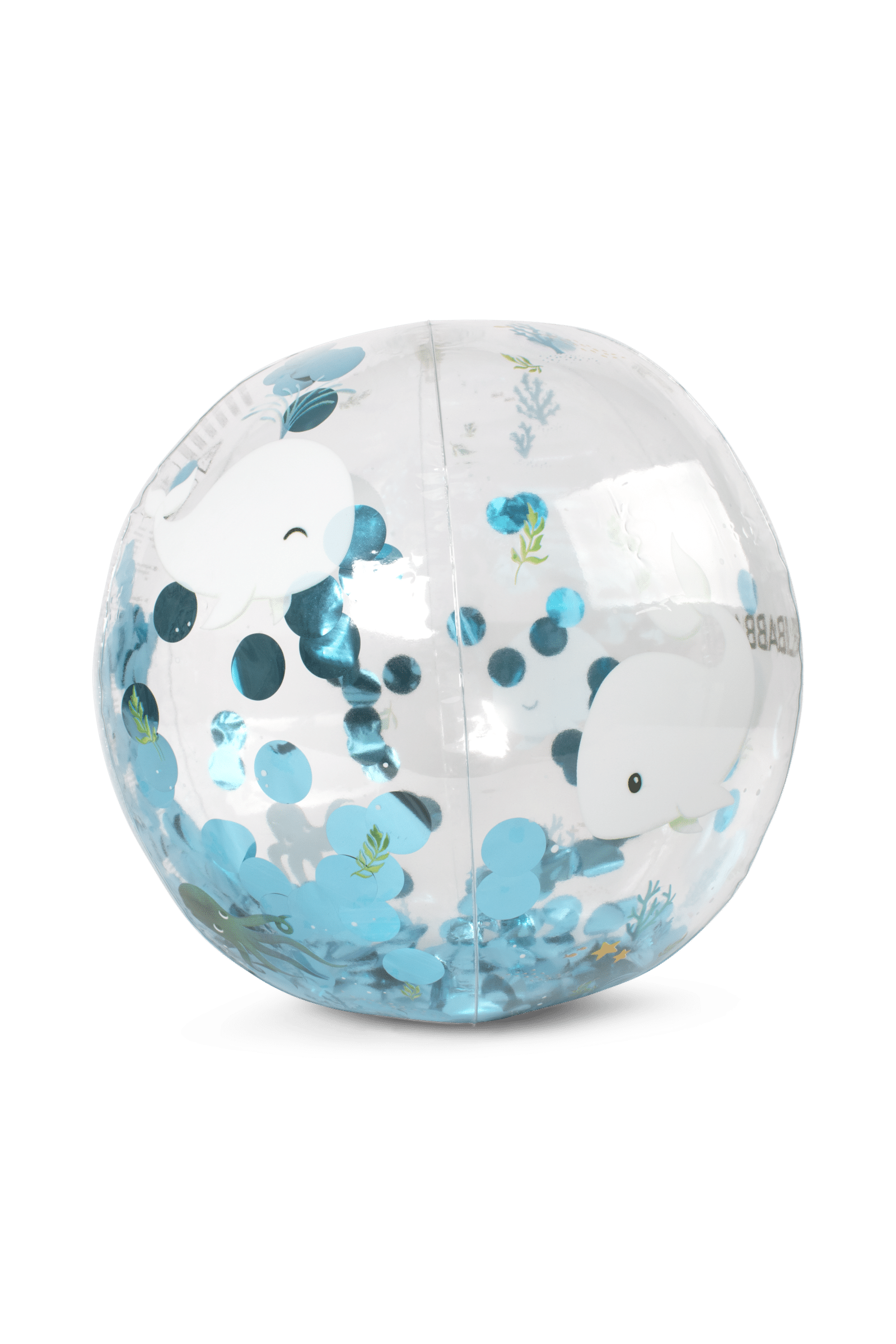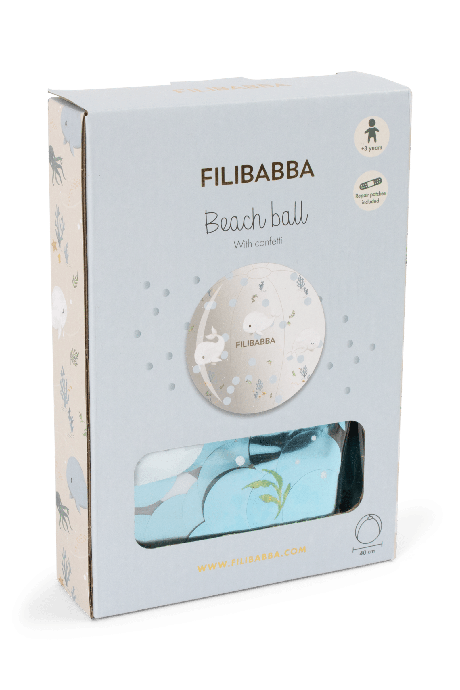 Chyťte! Či už na súši alebo vo vode – nie je nič lepšie, ako stráviť deň loptovou hrou. Objavte magický svet tesne pod hladinou mora. Veľryba Christian sa tu pokojne kĺže vodou, obklopená svojou veľkou morskou rodinou. Jemné morské prúdy sa vlnia na pokojnom, jemne krémovom pozadí a bezpečne unášajú vaše dieťa do sveta snov. S praktickou plážovou loptou vyrobenou z odolného PVC budú súčasťou hry aj tí najmenší členovia tímu. Plážová lopta je k dispozícii s letnými potlačami FILIBABBA a je naplnená dúhovými konfetami, vďaka čomu je dokonalým doplnkom k vašej plaveckej výbave FILIBABBA. Moje špeciálne vlastnosti: