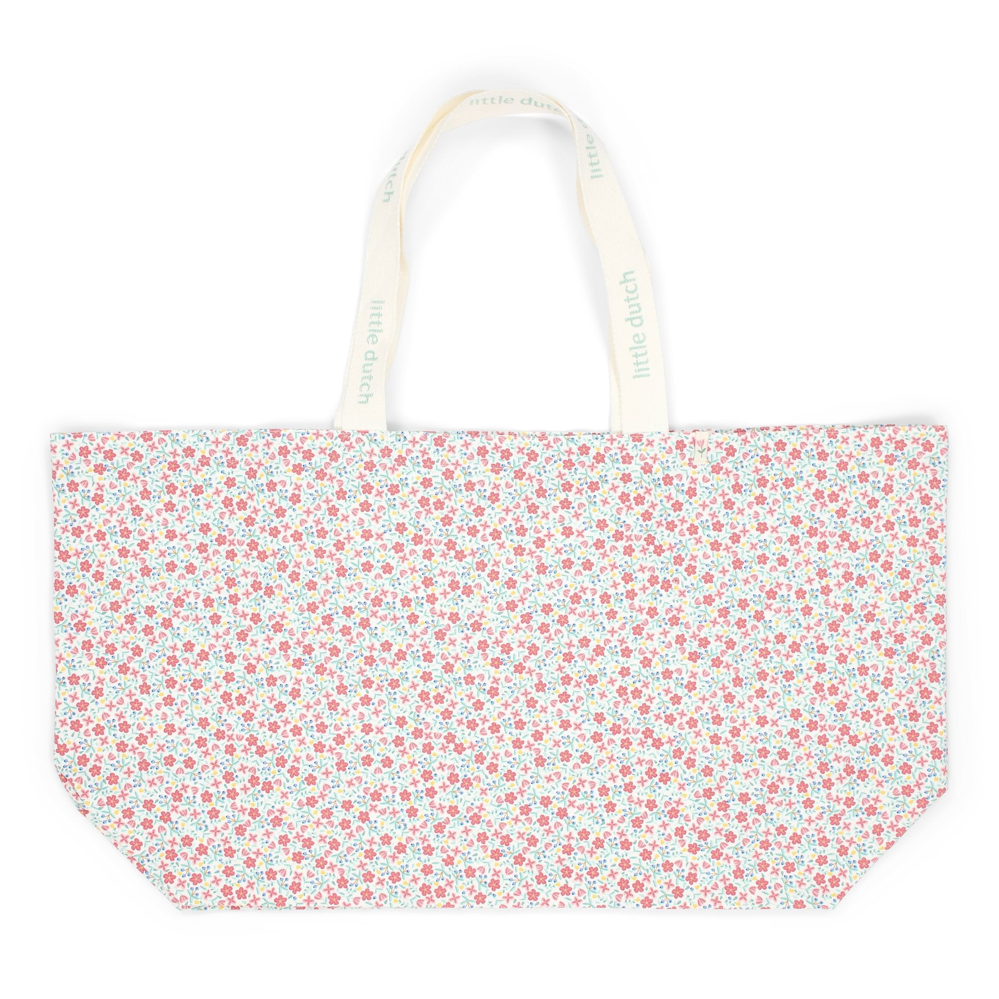 Plátená plážová taška z organickej bavlny s krásnou kvetinovou potlačou je ideálna na uloženie všetkého potrebného pre deň na pláži či pri bazéne. Vnútorné vrecko na zips umožňuje bezpečné uloženie kľúčov, peňaženky a pod.