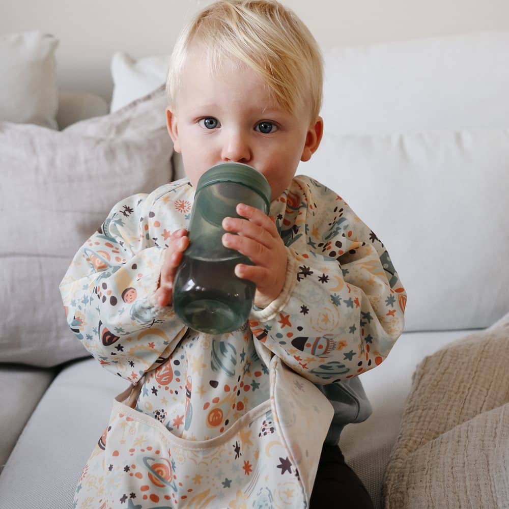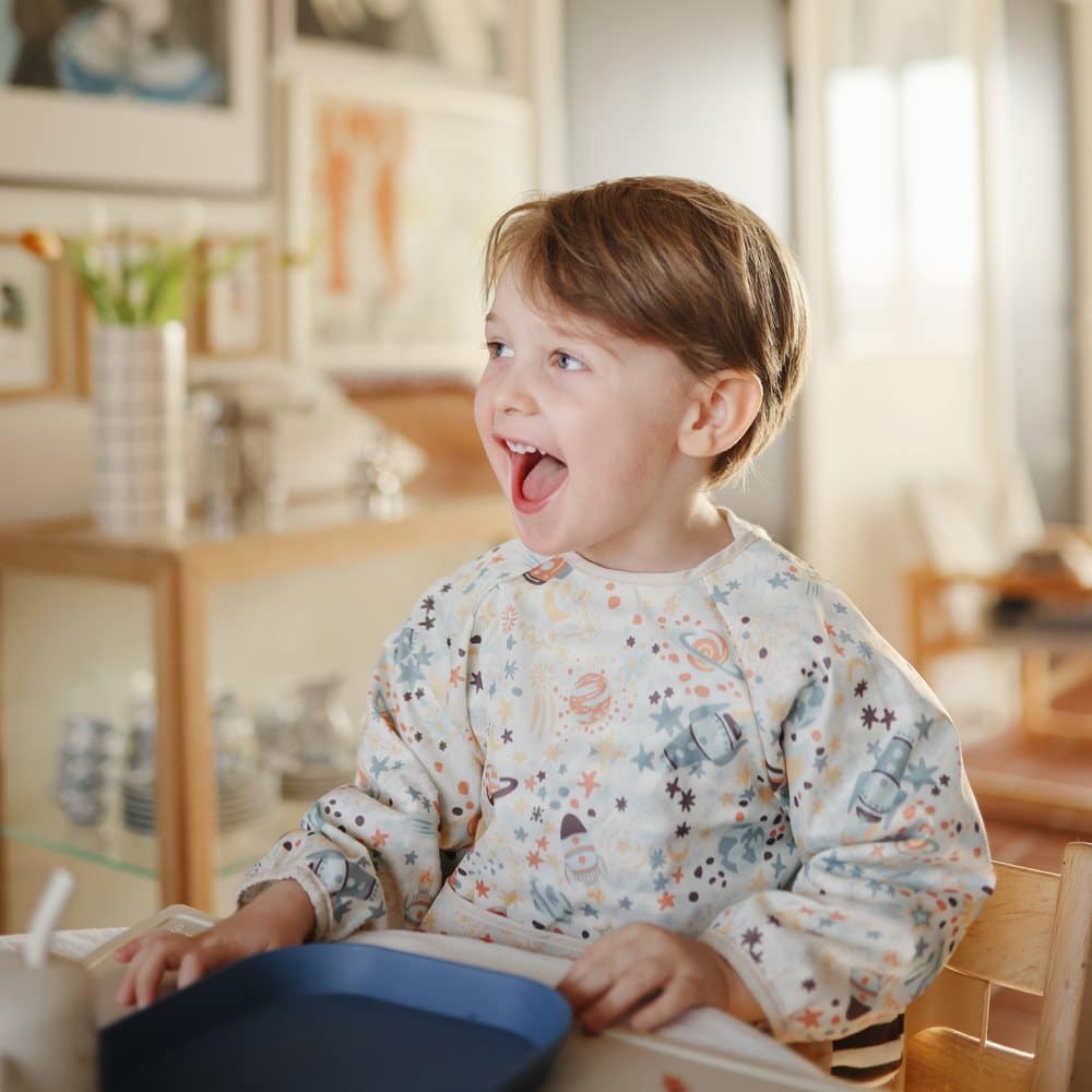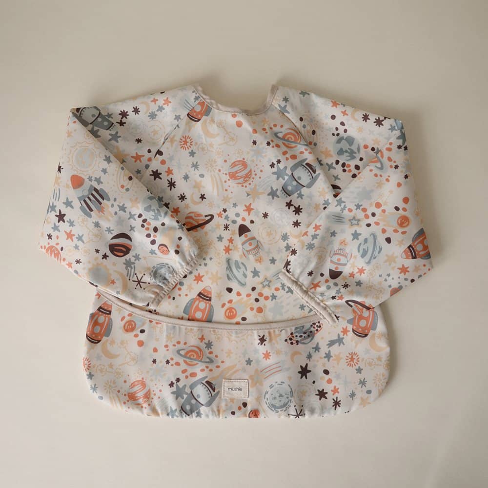 Podbradník s dlhým rukávom od značky Mushie pre bezproblémové jedenie!