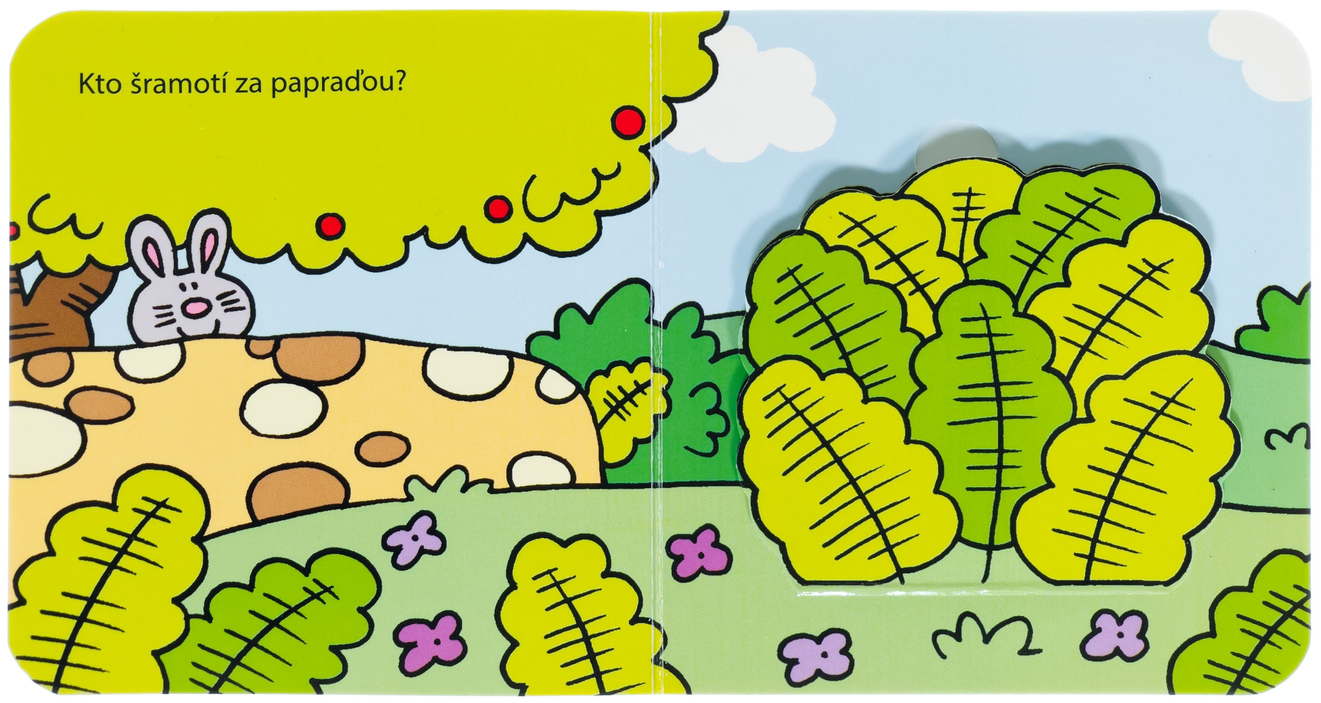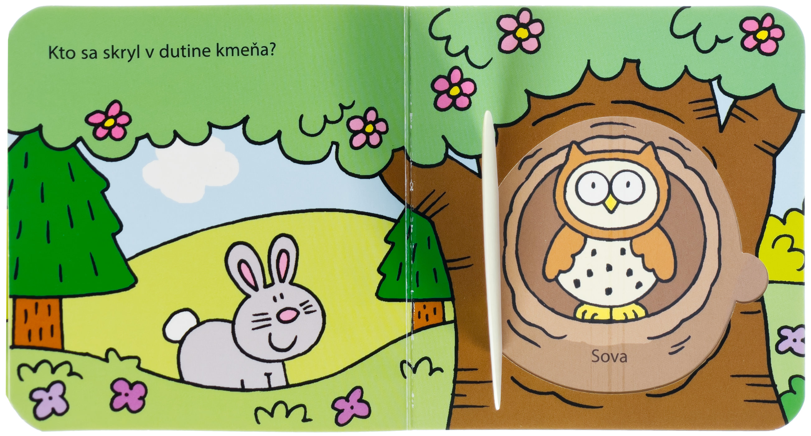 Pozri sa pod okienko a nájdi, kto sa tam schováva. Leporelo naučí deti zábavnou formou poznávať zvieratká, ktoré môžu stretnúť v lese – ježka, žabu, sovu, srnku, divú kačku, vtáčika, veveričku, netopiera i divého králička.