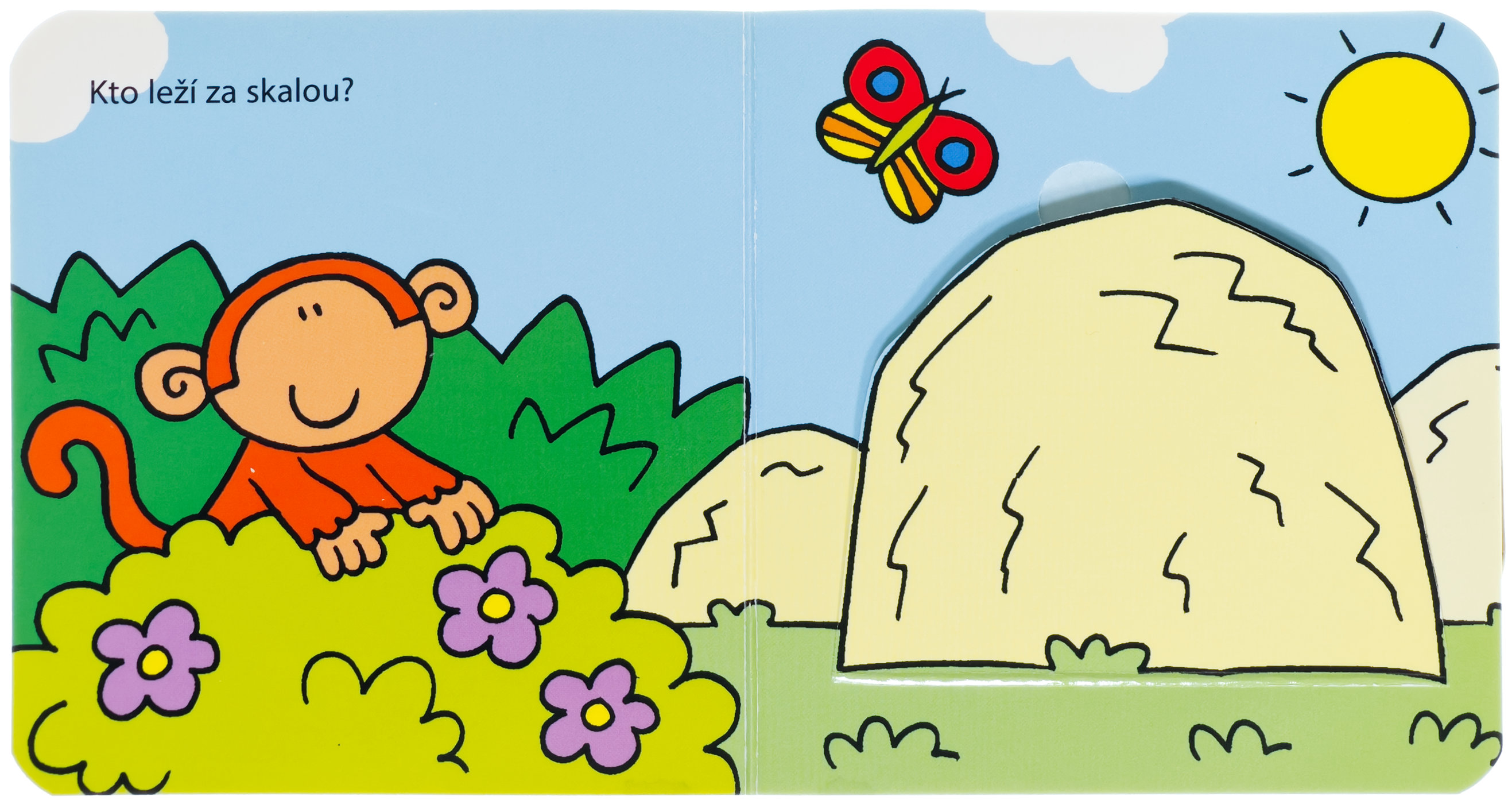 Pozri sa pod okienko a nájdi toho, kto sa tam schováva. Leporelo naučí deti zábavnou formou spoznávať zvieratká, ktoré môžu vidieť v zoo – slona, leva, hada, krokodíla, papagája, gorilu, hrocha, žirafu, zebru i opičku.