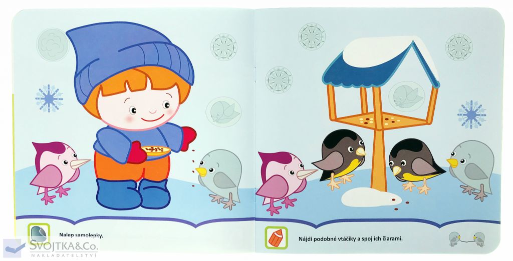 Spoj bodky v smere šípok a dokonči obrázky. Nájdi podobné vtáčiky a spoj ich čiarami. Nalep samolepk...zobraziť viac
