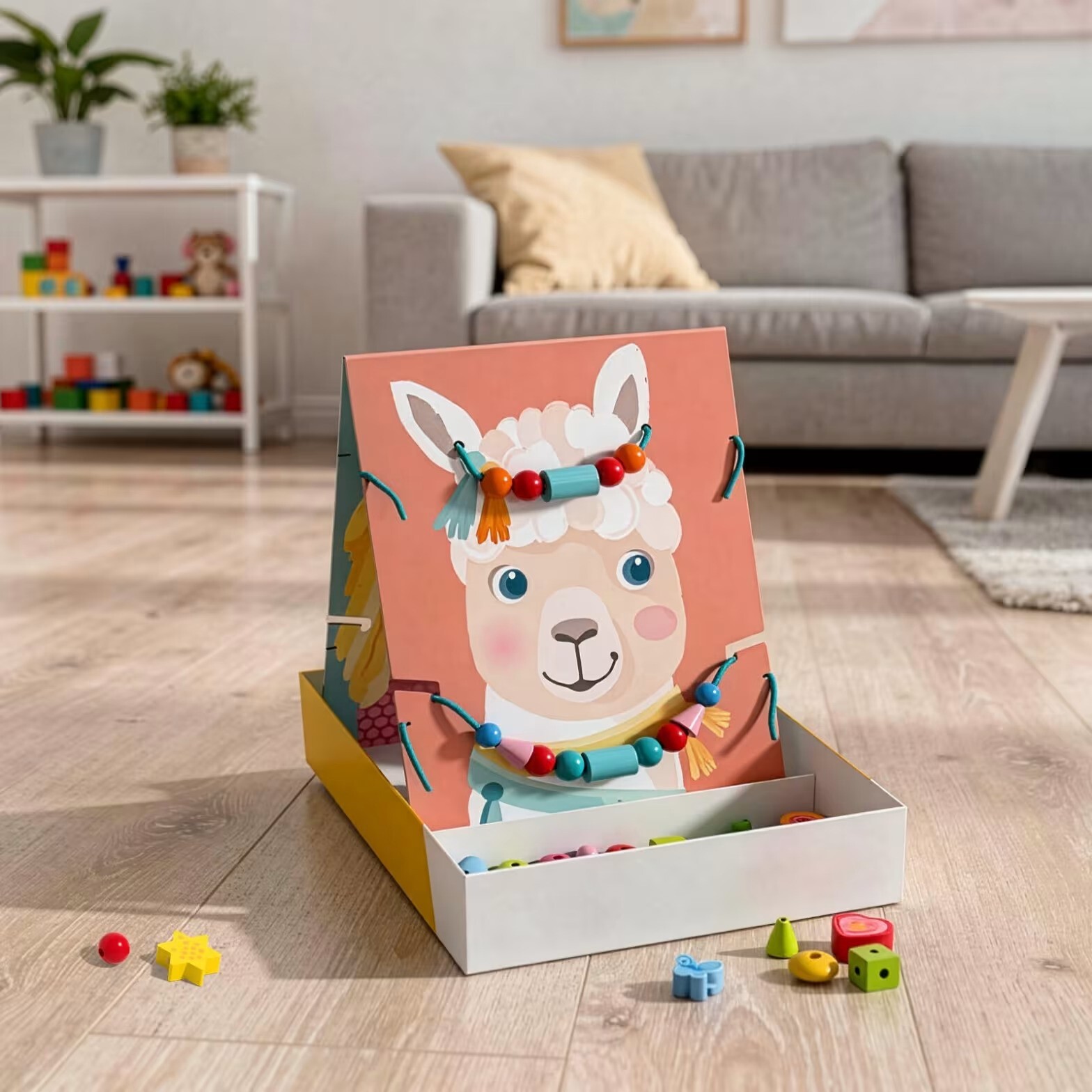 Navliekacia hra s motívmi medveďa, lamy a detí je kreatívna navliekacia hračka pre malých módnych ná...zobraziť viac