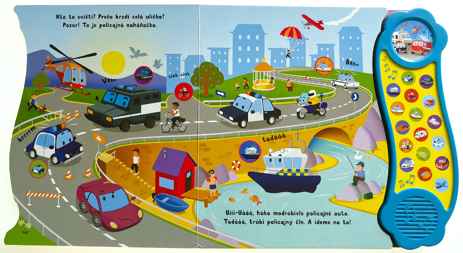 Uííí-Uááá, húka modrobiele policajné auto. Tadááá, trúbi policajný čln. Húúú, húka sanitka – táto in...zobraziť viac