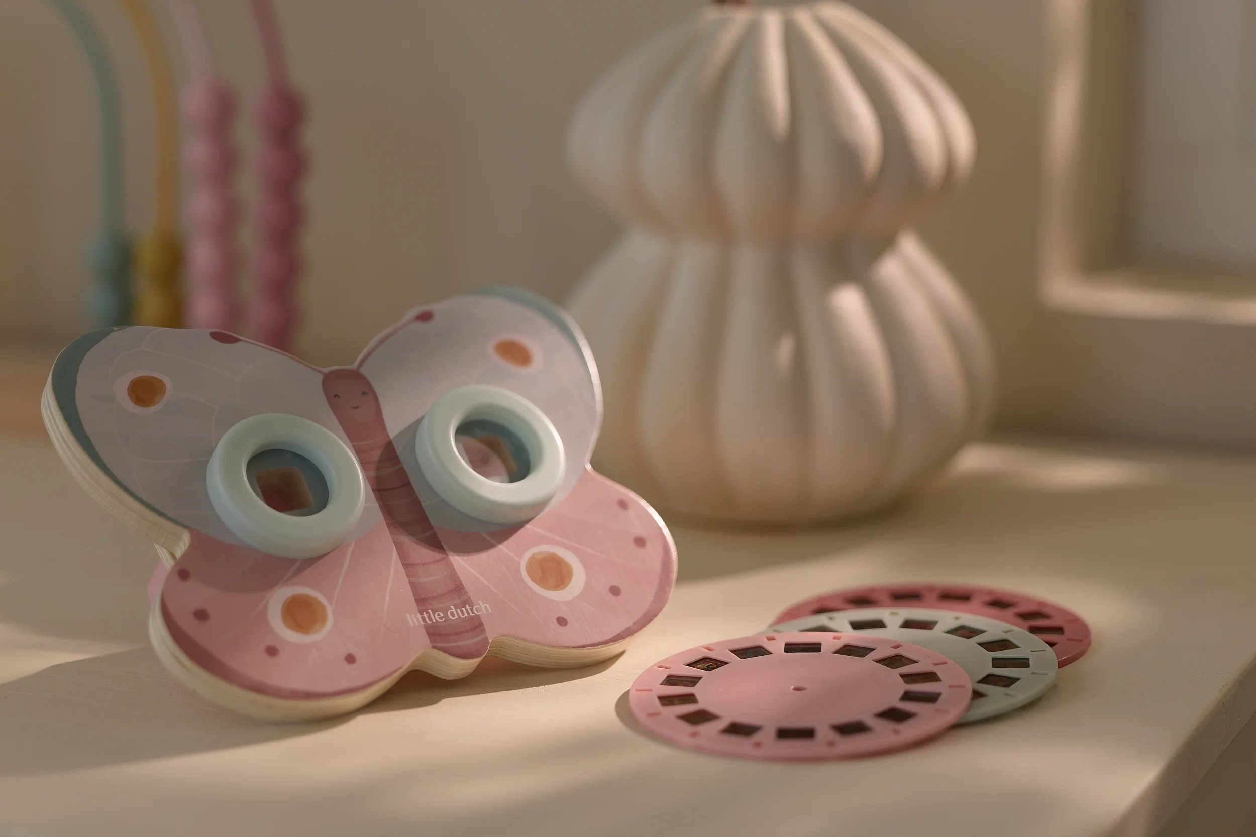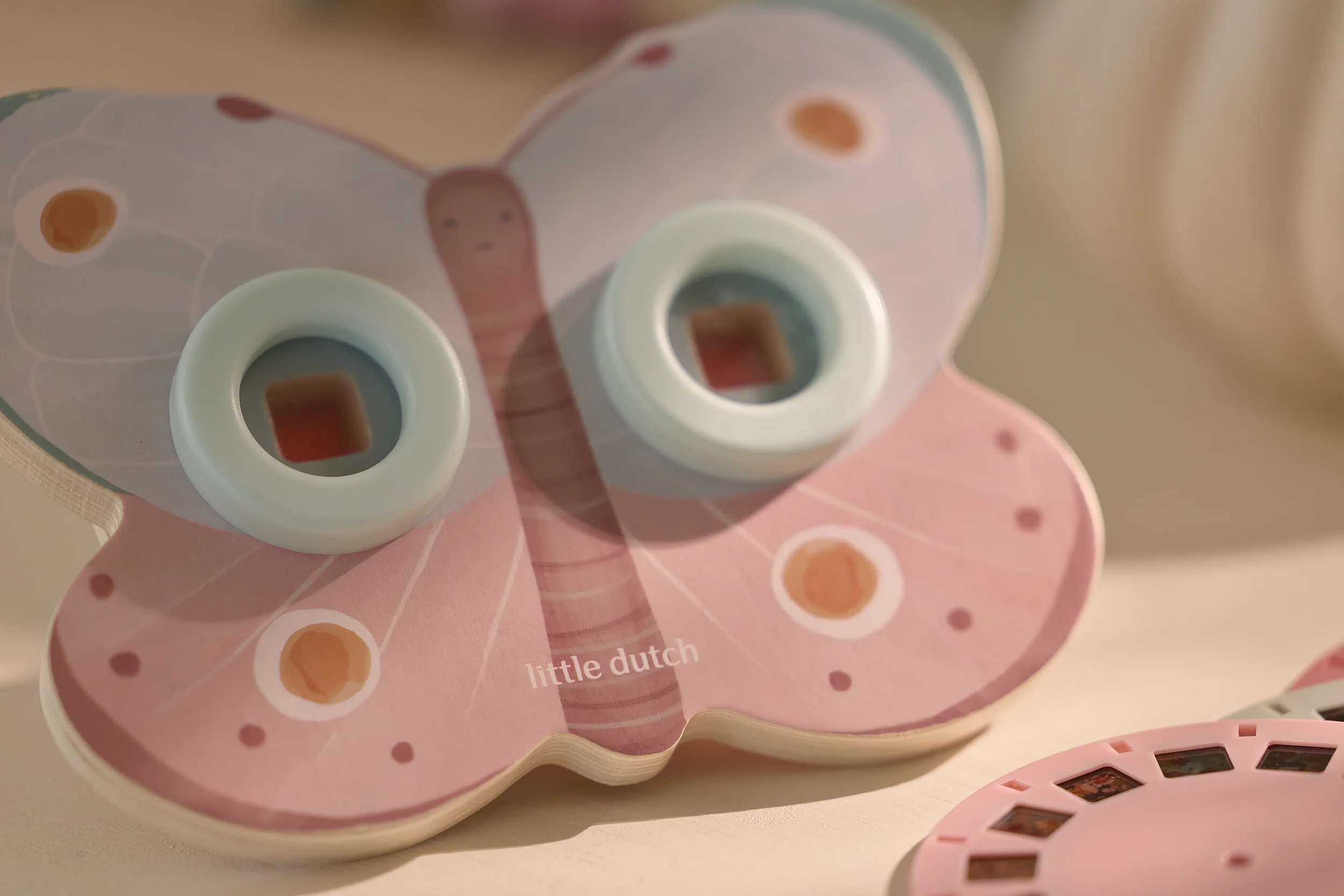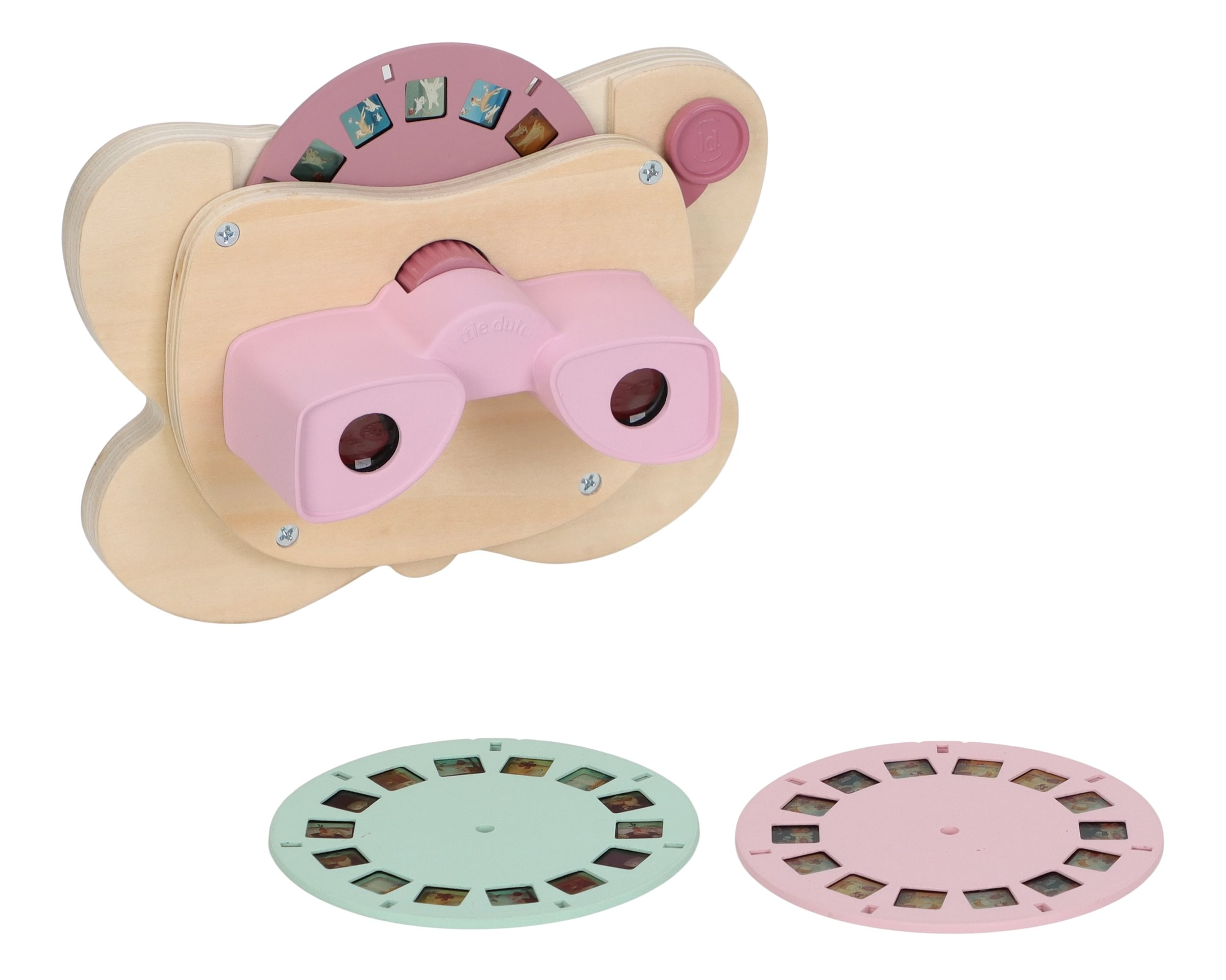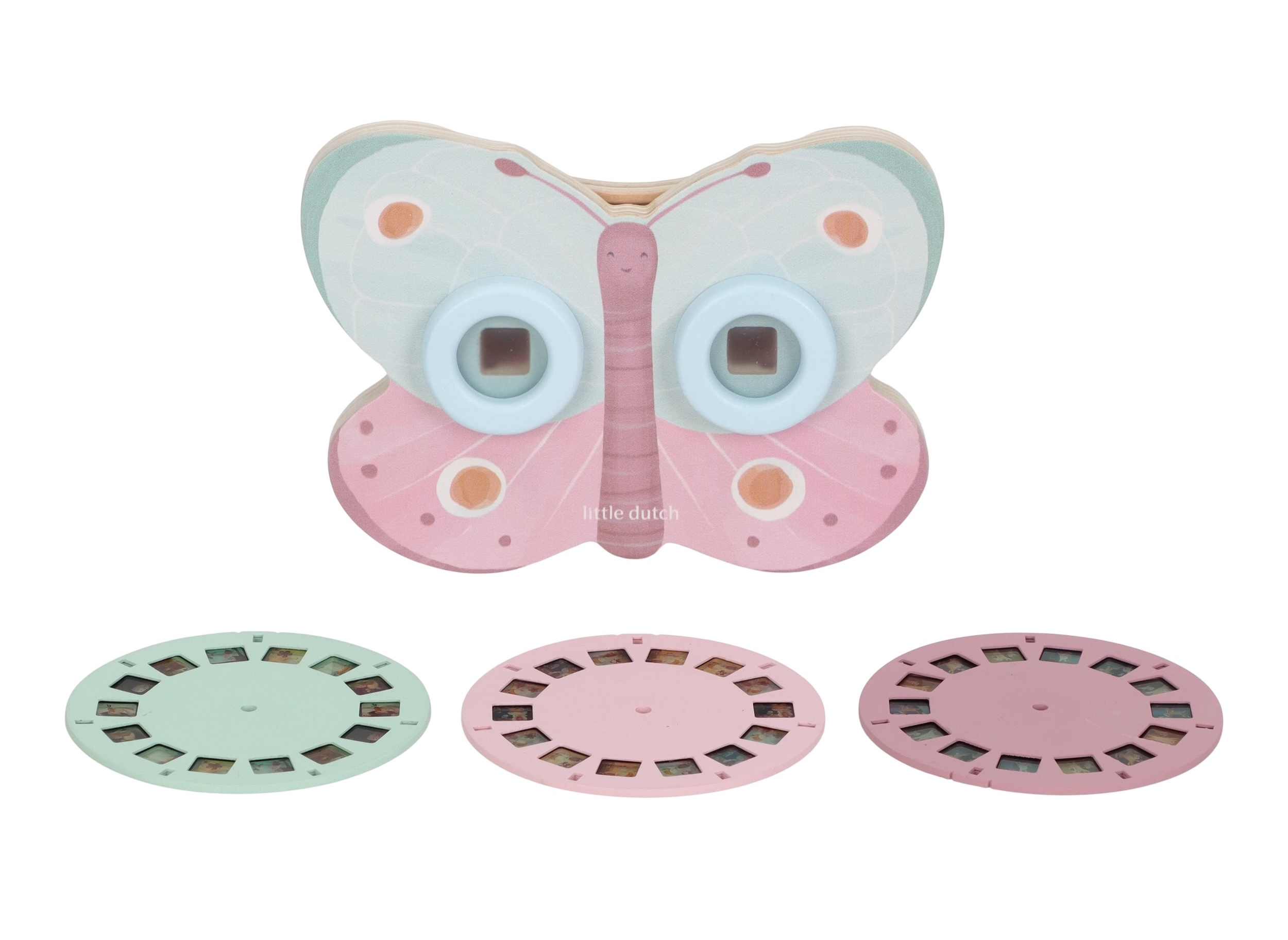 Prohlížeč příběhů Little Dutch je kouzelná hračka, která děti vtáhne do světa vyprávění a fantazie. Má podobu něžného motýla a funguje jednoduše: stačí otáčet kotoučky a před očima se odvíjejí obrázkové příběhy z lesa. Součástí jsou tři výměnné kotouče s příběhy ze života na zahradě. Ideální pro klidné chvíle před spaním i společné vyprávění s rodiči. Hračka podporuje rozvoj řeči, představivost a schopnost tvořit vlastní příběhy.