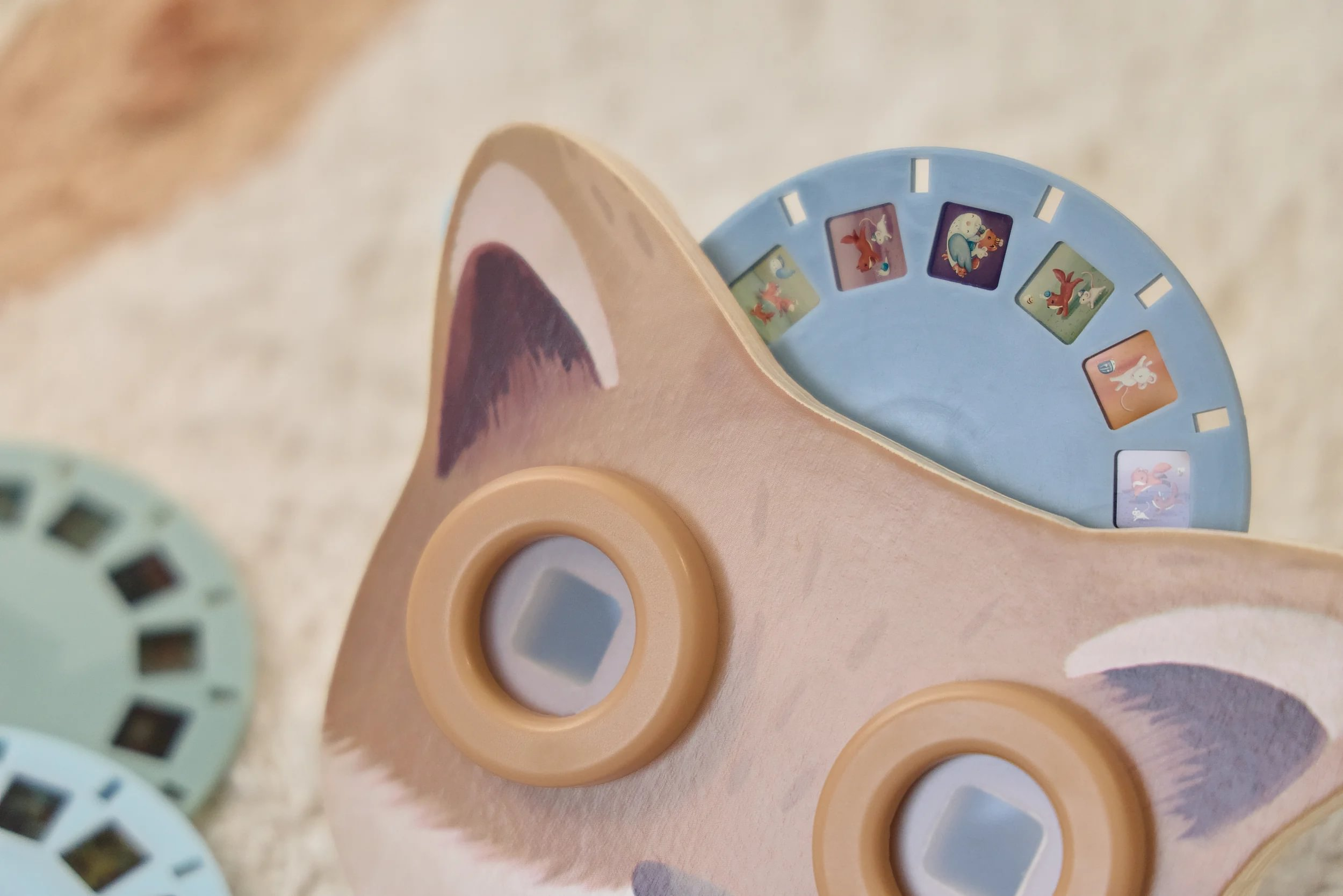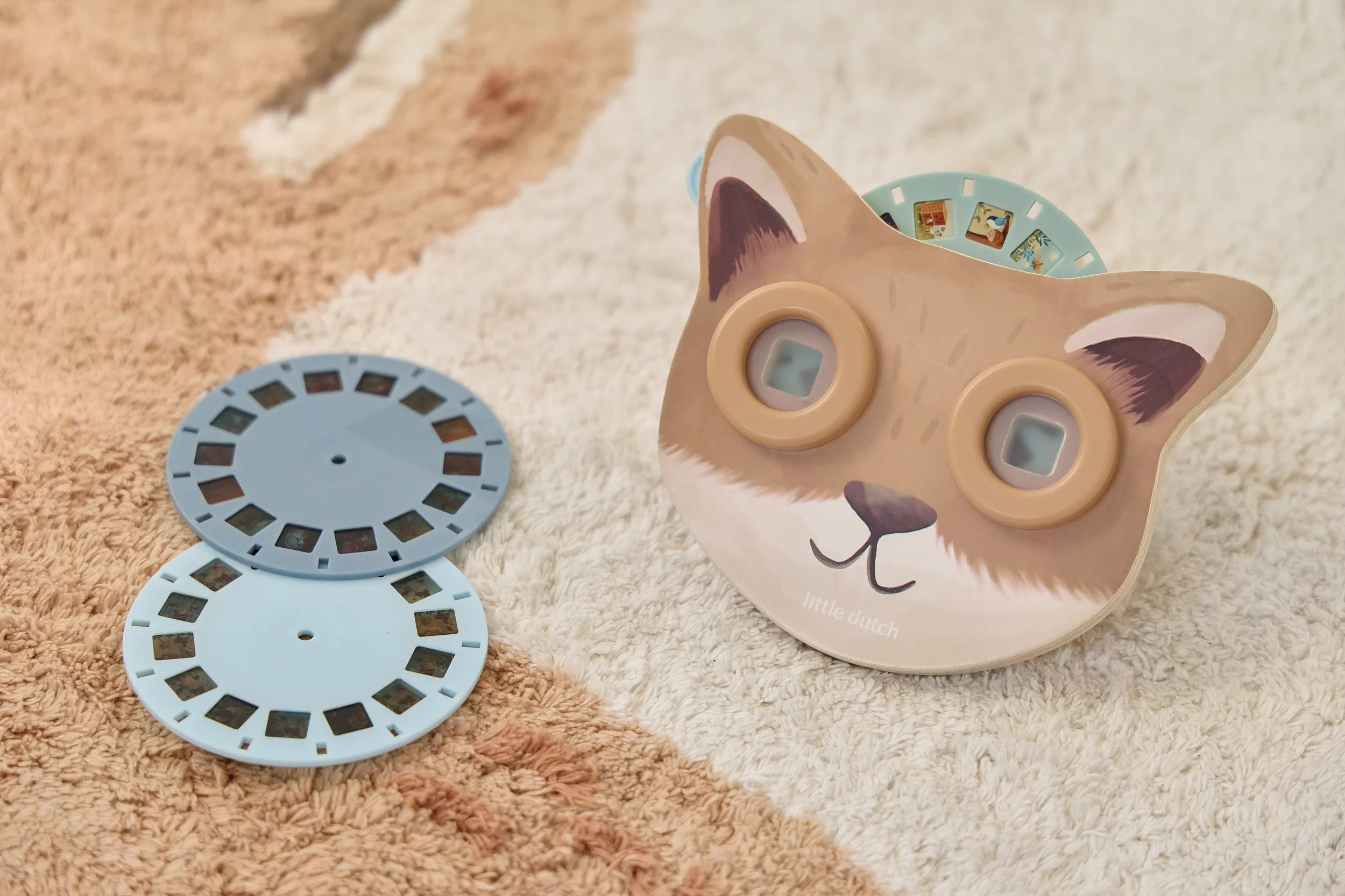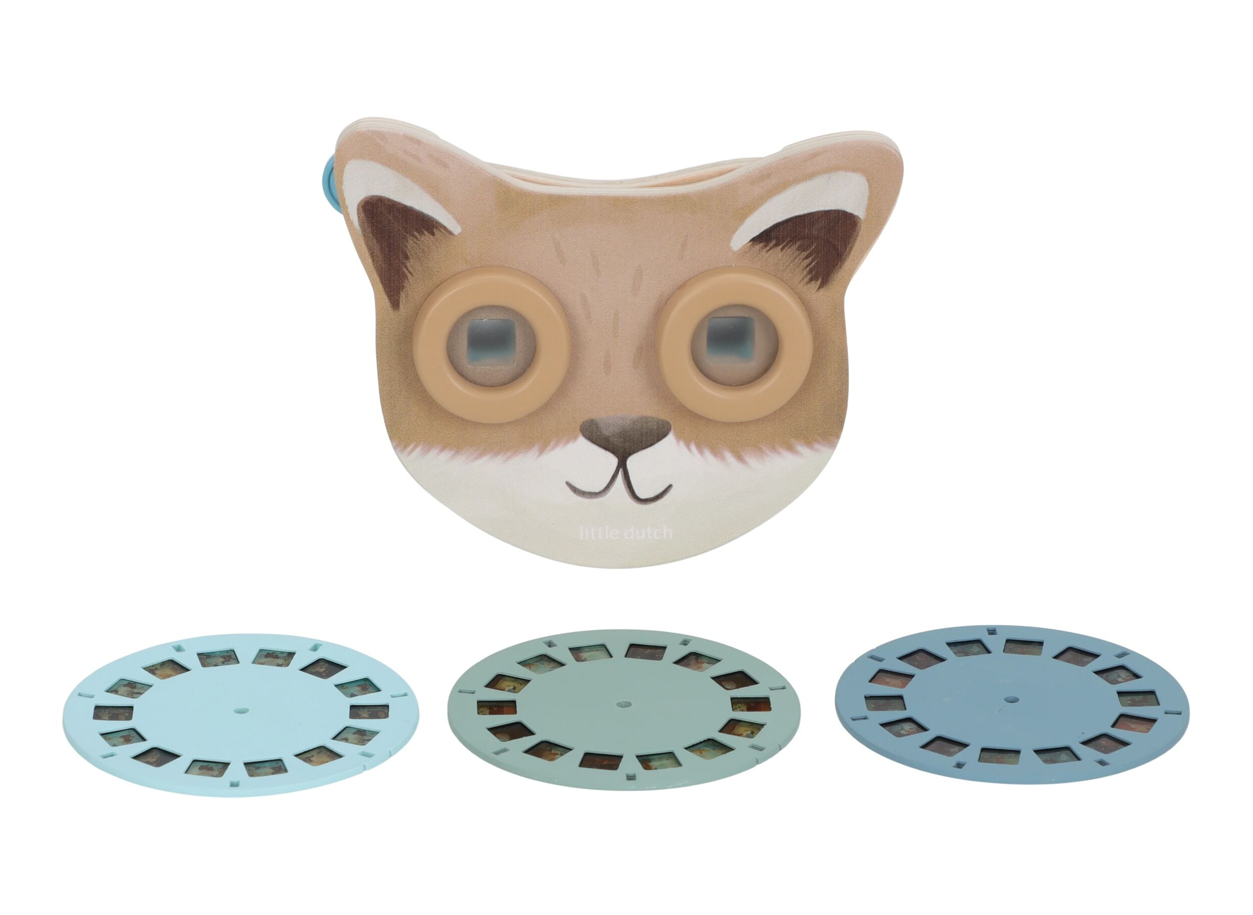Prohlížeč příběhů Little Dutch je kouzelná hračka, která děti vtáhne do světa vyprávění a fantazie. Má podobu roztomilé lišky a funguje jednoduše: stačí otáčet kotoučky a před očima se odvíjejí obrázkové příběhy z lesa. Součástí jsou tři výměnné kotouče s příběhy kamarádů z lesa. Ideální pro klidné chvíle před spaním i společné vyprávění s rodiči. Hračka podporuje rozvoj řeči, představivost a schopnost tvořit vlastní příběhy.