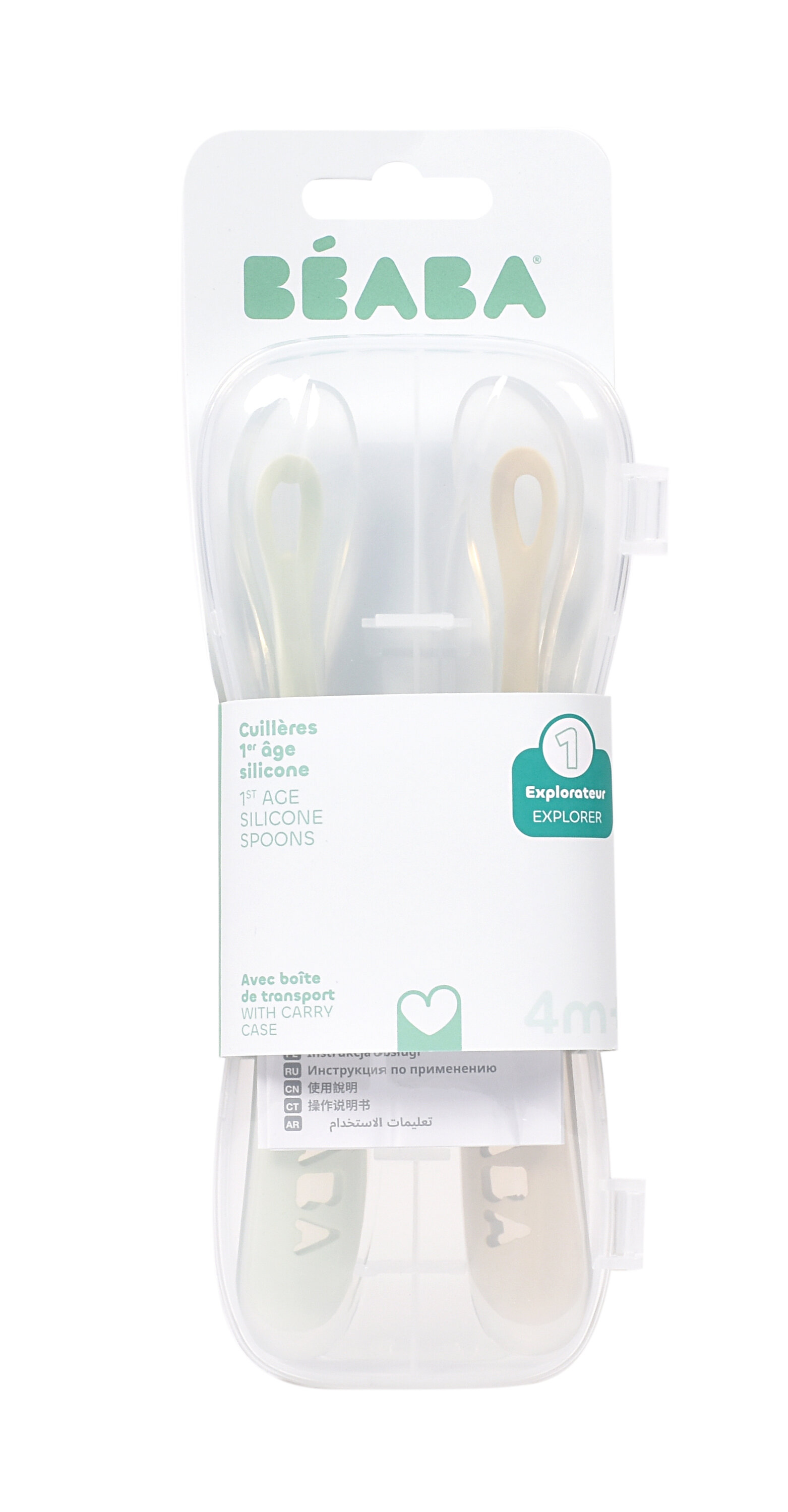 Silikonové lžičky Beaba pro nejmenší jsou šetrné k citlivým dětským dásním a navržené pro hladký přechod ze savičky na lžičku. Dlouhá rukojeť usnadňuje rodiči nabírání z misky i skleničky bez zašpinění rukou. Praktické pouzdro umožňuje hygienické přenášení lžiček např. v přebalovací tašce.
