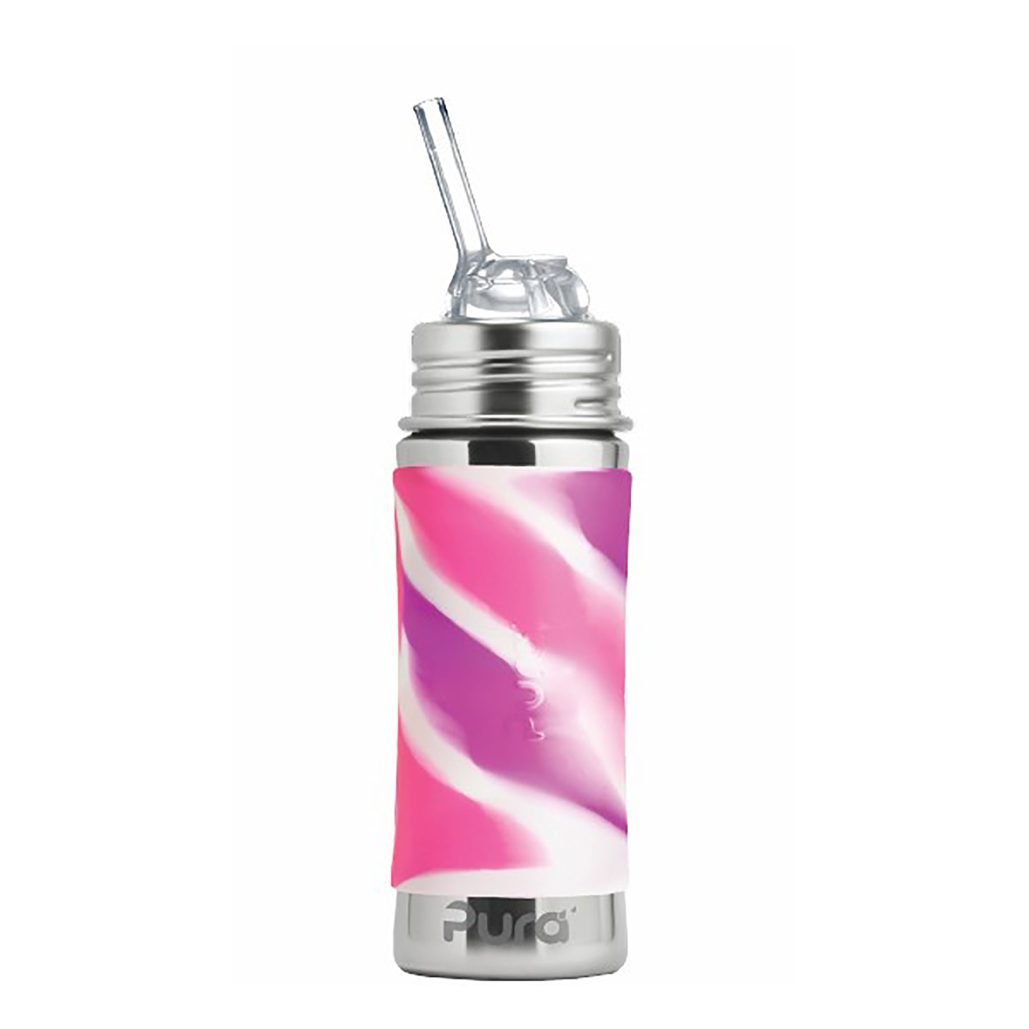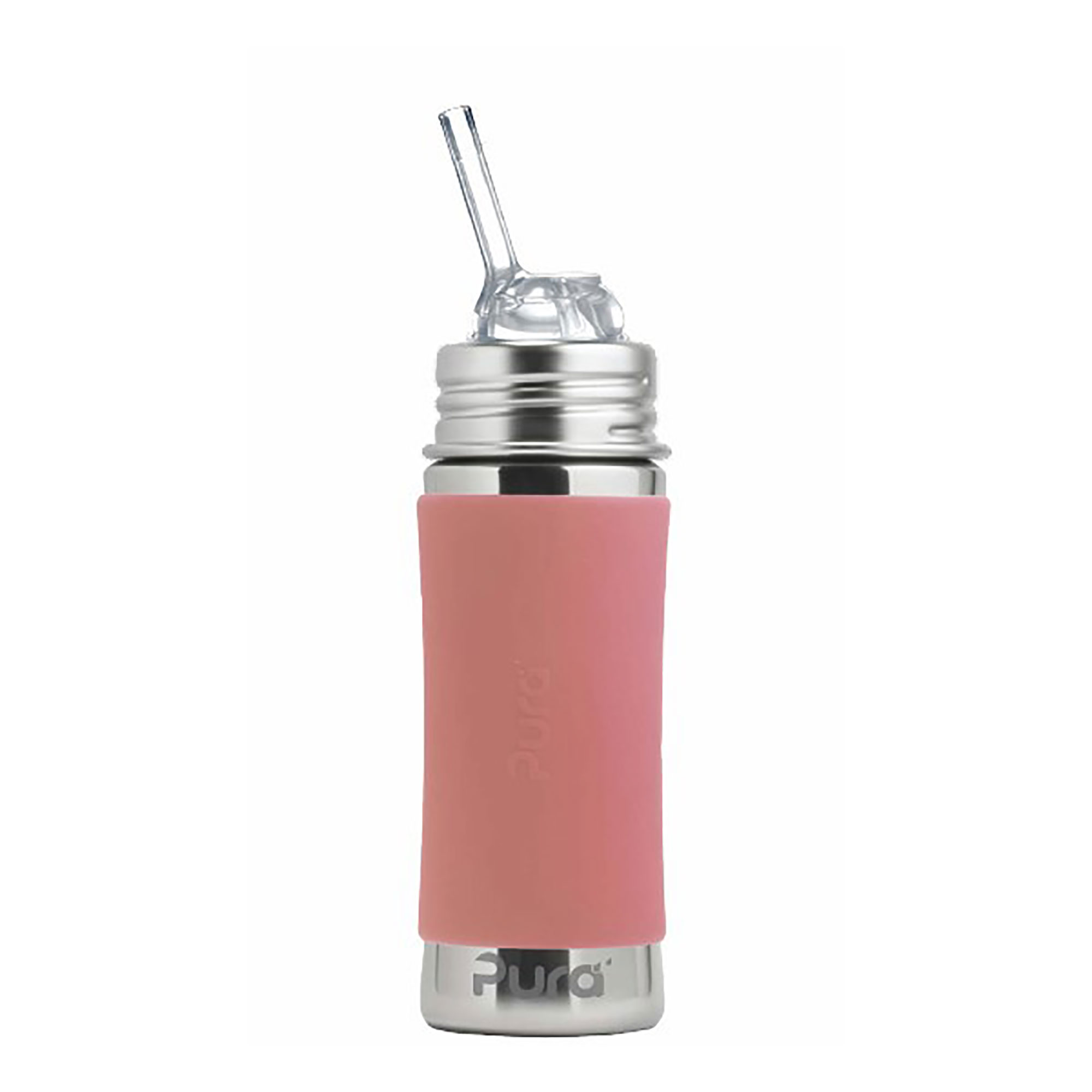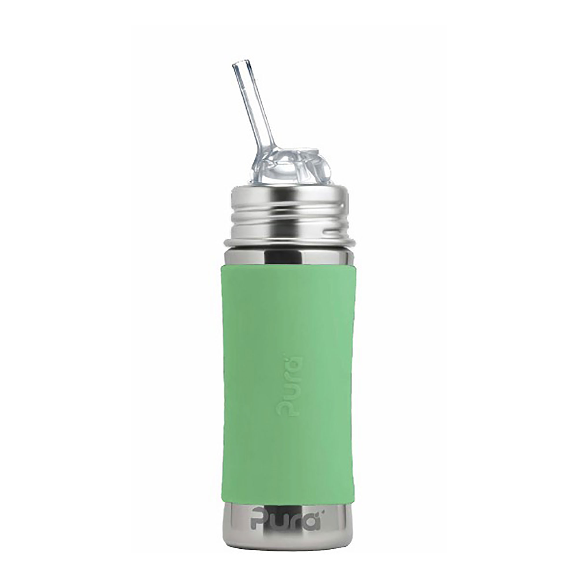 Konečne bezpečná fľaša vyrobená 100% bez plastových častí. S Pura fľašami si môžete byť istí, že sa do nápoja vnútri neuvoľňujú žiadne škodlivé látky a toxíny, ani príchute a pachy ako je tomu u plastových fliaš alebo fliaš s plastovými vrchnákmi. Na ničom nezáleží viac ako na zdraví vašich detí a vás. Pura slamka má voľný prietok bez membrány. Je vyrobená zo 100% silikónu medicínskej kvality. Slamka je zložená z dvoch častí, vďaka čomu je možné piť z fľaše dvomi spôsobmi: Použitím oboch častí možno sať slamkou bežným spôsobom (fľaša vo zvislej polohe). Odobratím spodnej časti slamky možno piť z fľaše rovnako ako s použitím náustka (fľaša naklonená hore dnom). Any Bottle… Any Lid TM – patentovaný systém umožňuje použiť akúkoľvek Pura fľašu s akýmkoľvek Pura uzáverom. Baby Grows... Bottle Evolves TM – Pura fľaše sa prispôsobujú a “rastú” s vaším dieťaťom. Nekupujte zakaždým novú fľašu. Jednoducho zmeňte dojčenskú fľašu na fľašu s náustkom alebo so slamkou a neskôr so športovým uzáverom, či športovou slamkou tak, že vymeníte len silikónovú časť. Môžete tak jednu fľašu používať mnoho rokov a šetrite tak peniaze aj prírodu. Žiadne plasty - žiadne obavy o bezpečnosť. Najbezpečnejšia, najuniverzálnejšia, ľahká a nerozbitná ekologická fľaša ocenená viac ako 35 oceneniami. Prvá fľaša na trhu 100% bez plastových častí a jediná fľaša, ktorá získala certifikát Made Safe® potvrdzujúci bezpečnosť použitých materiálov vysoko nad rámec legislatívnych požiadaviek. Fľaša a objímka sú vyrobené z prvotriednej potravinárskej nerezovej ocele triedy 304 (18/8) a ostatné časti zo silikónu najvyššej medicínskej kvality. Bez BPA, PVC, ftalátov a bez akýchkoľvek iných nebezpečných látok a toxínov, testované podľa smerníc EÚ. Mierka na vnútornej strane pre pohodlné a presné dávkovanie. Objem celkom: 325 ml. Balenie obsahuje: nerezovú fľašu 325 ml, nerezovú objímku, silikónovú slamku, silikónový vrchnák, silikónový návlek, kefku na čistenie slamky. 325 ml fľaša nemá vákuovú izoláciu a neslúži ako termoska. Nepoužívajte na vriace alebo sýtené nápoje, pretože sila pary resp. bubliniek by mohla vytlačiť tekutinu cez slamku von. V prípade použitia horúceho nápoja sa steny fľaše rýchlo nahrejú a môžu na dotyk páliť. Vhodné do umývačky riadu.