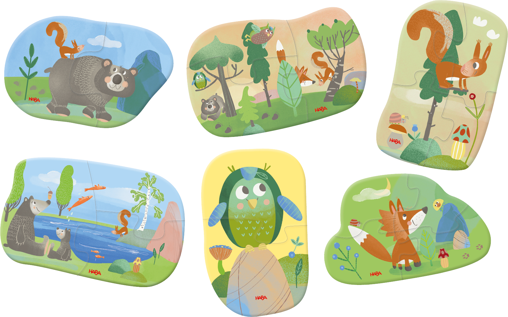 Sada obsahuje 6 jednoduchých kartónových puzzle s milými motívmi lesných zvieratiek. Veľké dieliky sú prispôsobené malým detským rukám a ľahko sa skladajú. Puzzle rozvíjajú jemnú motoriku, sústredenie a prinášajú deťom radosť z prvých úspechov pri skladaní.