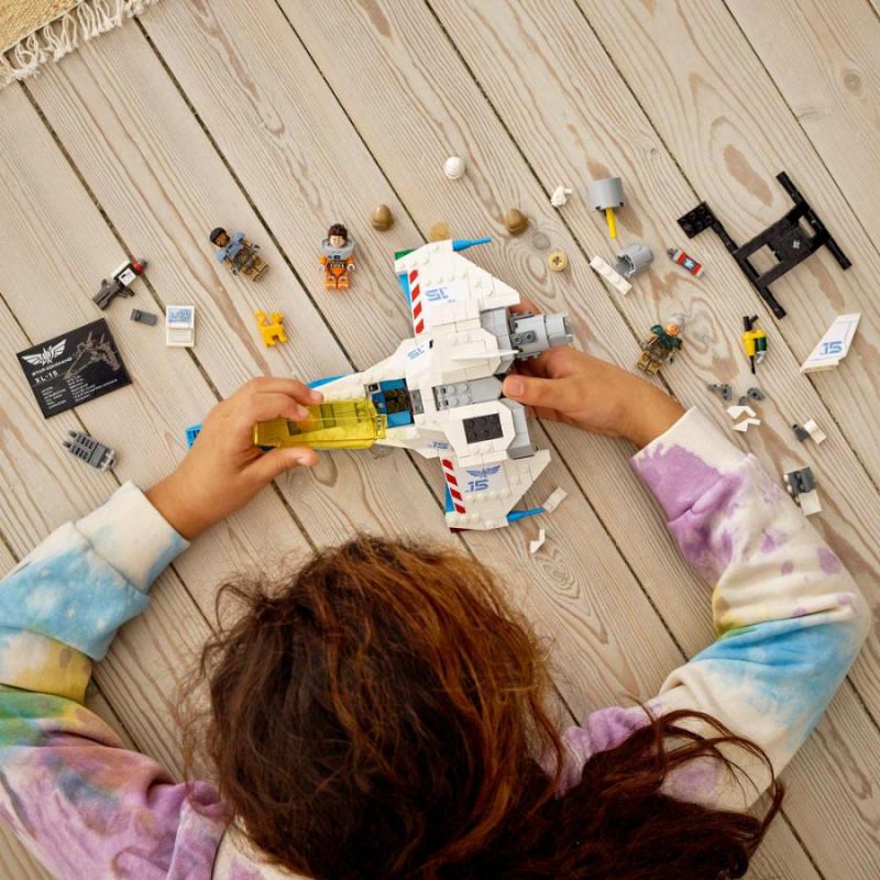 So zberateľskou stavebnicou Raketa XL-15 (76832) sa môžu fanúšikovia vesmíru vo veku od 8 rokov stať hrdinami vlastných príbehov. Ich fantázia dostane krídla, keď budú cestovať vesmírom v rakete po boku Buzza Lightyeara v snahe zachrániť galaxiu pred zlom. Model na hranie aj vystavenie Táto parádna raketa obsahuje autentické detaily z filmu Lightyear od štúdií Disney a Pixar, ktorý rozpráva príbeh o zrode Buzza Lightyeara – nechýba medzi nimi otvárací kokpit s miestom pre minifigúrku LEGO® Buzza Lightyeara ani vyberateľný palivový článok. Súčasťou setu sú 4 postavy z filmu a 3 zbrane vrátane Darbyho raketometu „Mr. Boom“, takže fanúšikovia môžu znova prežiť obľúbené filmové scény. Nechýba ani podstavec s informačnou tabuľkou, aby si mohli svoj model hrdo vystaviť v izbe.