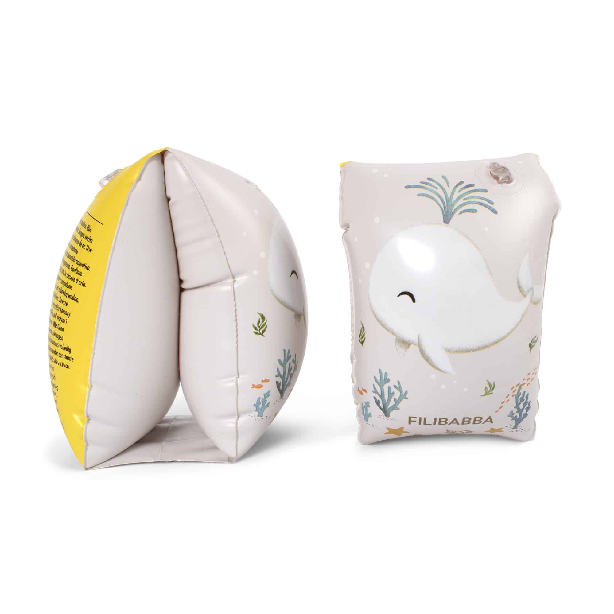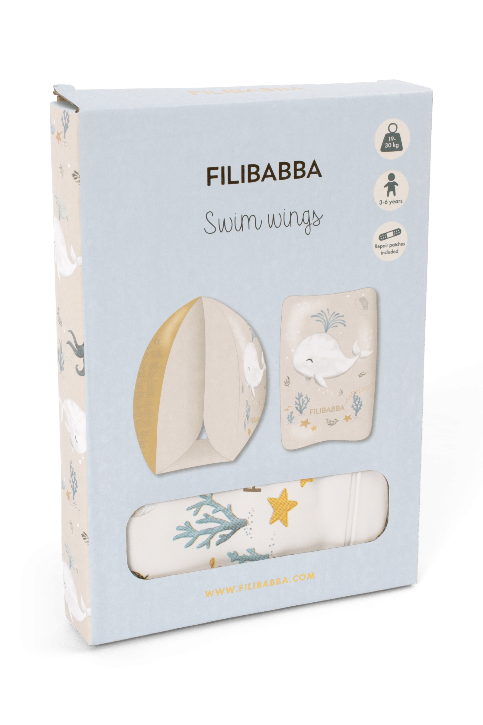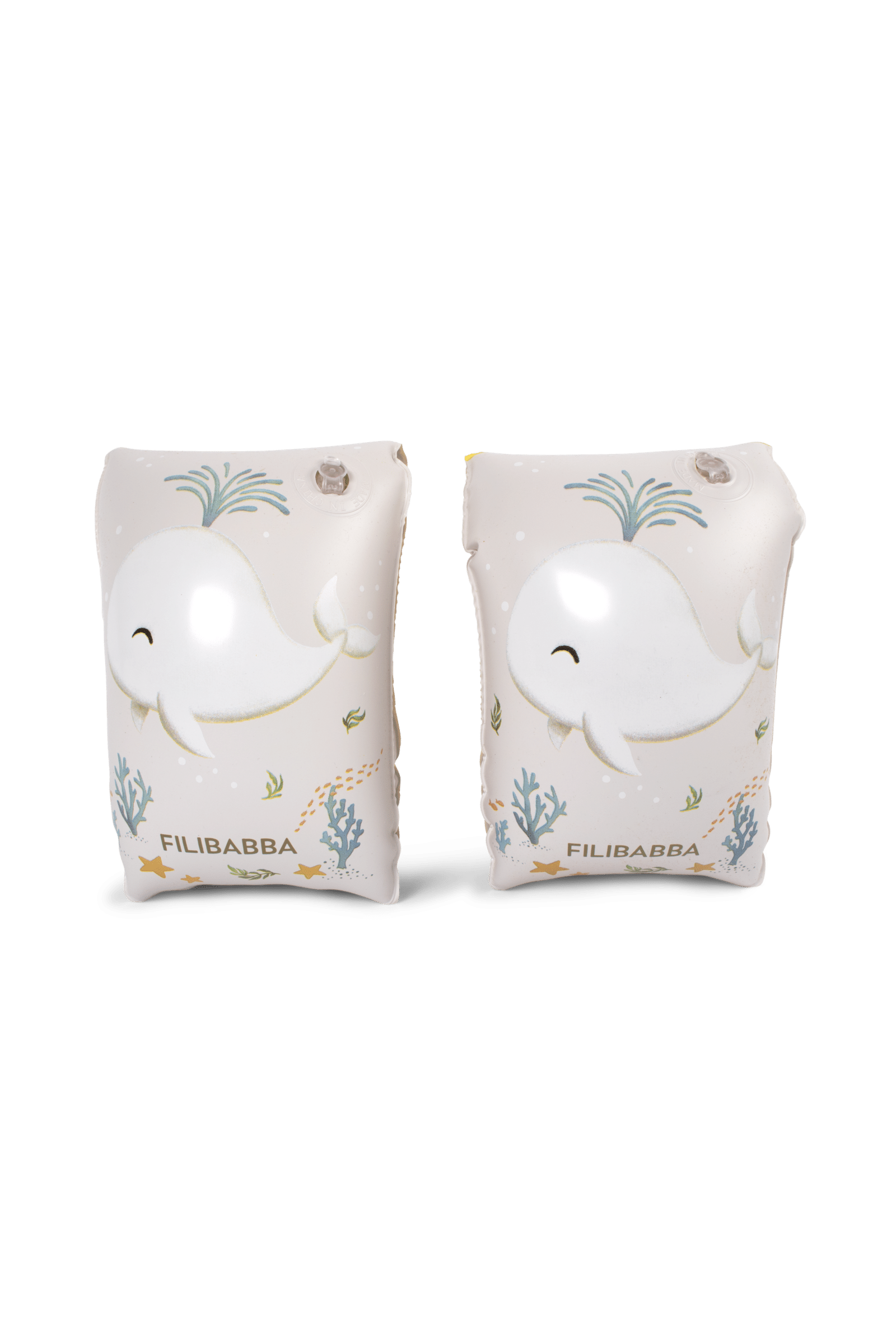 Nie je nič vzrušujúcejšie než prvé pádlovanie vo vode! Plávacie rukávniky poskytujú deťom optimálnu bezpečnosť a pohodlie pri objavovaní vody, keď ešte nevedia plávať. Nafukujú sa pomocou bezpečnostných ventilov, ktoré sa po nafúknutí zatlačia dovnútra, takže pri používaní neprekážajú. Vyrobené sú z kvalitného PVC s hrúbkou 0,25 mm. Dizajn je inšpirovaný čarovným podmorským svetom – veľryba Christian pokojne pláva medzi svojou morskou rodinou, zatiaľ čo jemné prúdy sa vlnia na krémovom pozadí a vytvárajú pokojnú, snovú atmosféru. Upozornenie: Plávacie rukávniky nie sú záchrannou pomôckou a nechráni pred utopením. Používajú sa výhradne pod neustálym a zodpovedným dohľadom dospelej osoby. Deti musia byť vždy pod dohľadom vo vode aj v jej blízkosti. Základné vlastnosti: