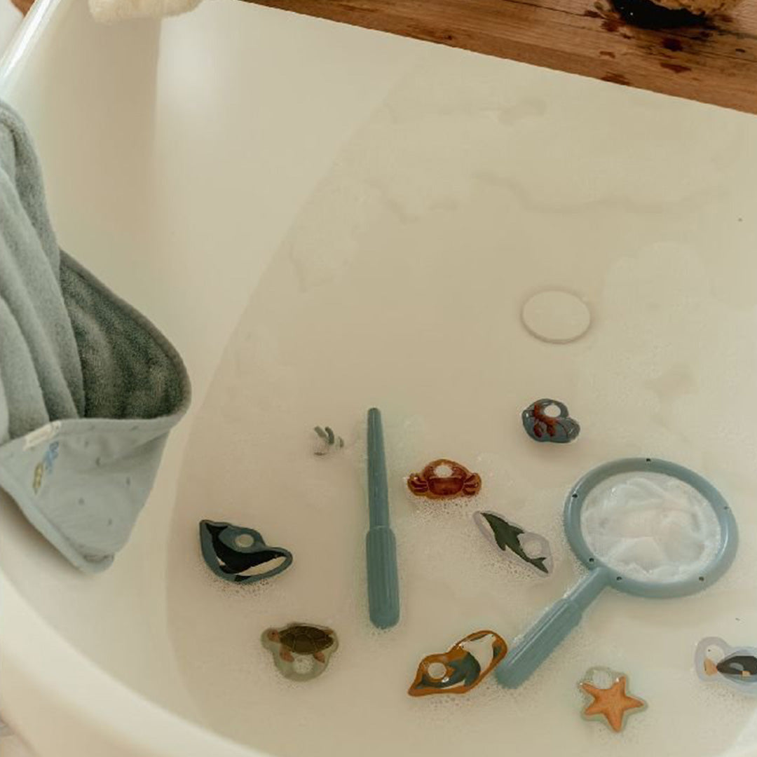 Proměňte koupání v dobrodružství s rybářskou sadou Little Dutch! Tento hravý set přináší dětem spoustu zábavy a zároveň pomáhá rozvíjet jejich jemnou motoriku. Obsahuje rybářský prut, síťku a osm plovoucích figurek mořských živočichů, které děti mohou během koupání lovit z vody.