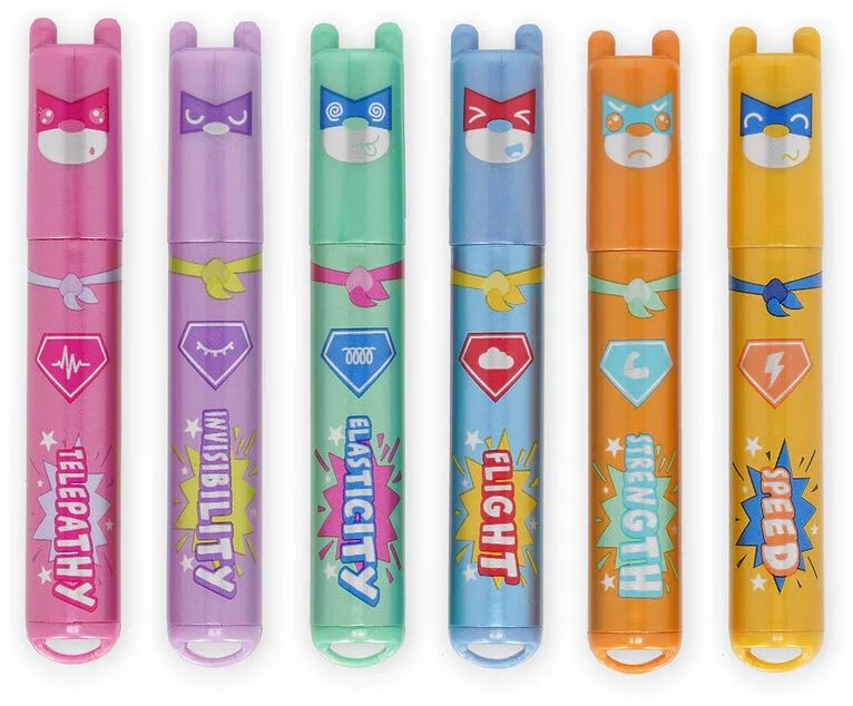 Potrebujete pomoc s uchovaním si prehľadu o najdôležitejších poznámkach? Nebojte sa: vaši superfarební superhrdinovia sú tu! Sada 6 mini zvýrazňovačov od Legami je tím šiestich maskovaných plyšových medvedíkov v šiestich rôznych metalických farbách, ktorí majú silu splniť každú vašu misiu, či už v škole alebo v práci!