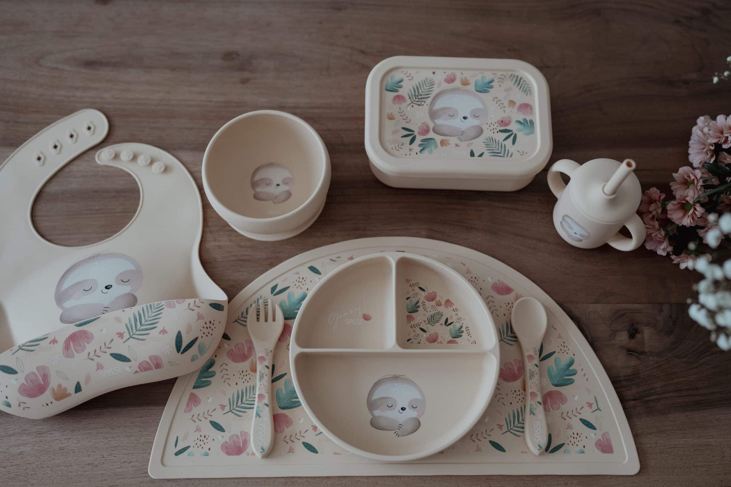 Vyrobené zo 100 % potravinárskeho silikónu. Jedálenské súpravy SASSI neobsahujú škodlivé chemikálie ako BPA, PVC a ftaláty, čím zaručujú, že jedlo vášho dieťatka bude podávané v čo najčistejšom a najbezpečnejšom prostredí. Mäkká a hladká štruktúra silikónu robí každý kúsok príjemným na dotyk, zatiaľ čo pružnosť materiálu zaisťuje odolnosť voči nevyhnutným nárazom a pádom, ktoré sprevádzajú detské stolovanie. Naše silikónové výrobky spĺňajú prísne bezpečnostné normy EN14372.