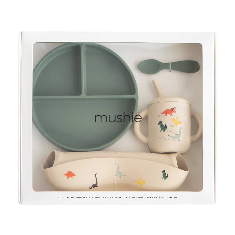 Mushie Silikónový jedálenský set pre batoľatá – detaily