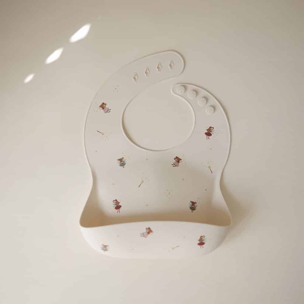 Udržte svoje dieťatko v pohodlí a čistote s premyslene navrhnutým silikónovým podbradníkom Mushie.