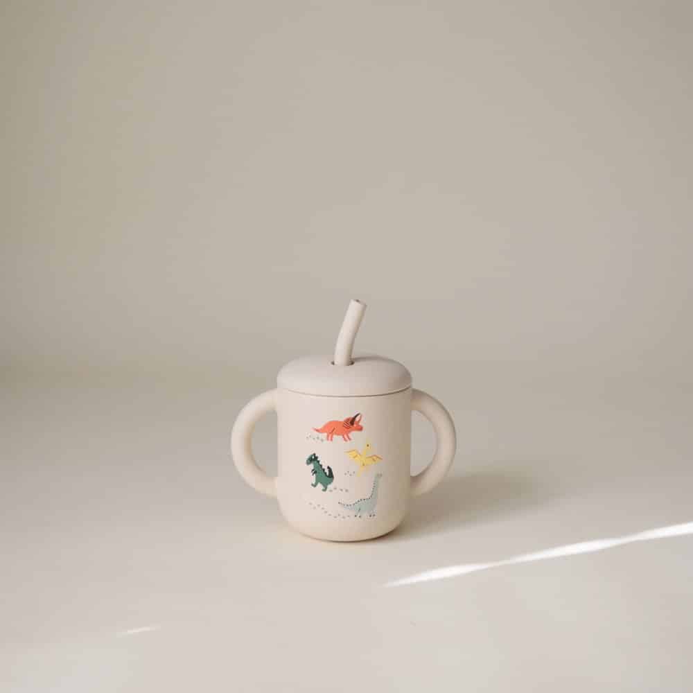 Mushie Silikónový pohárik so slamkou mushie - dinosaurs
