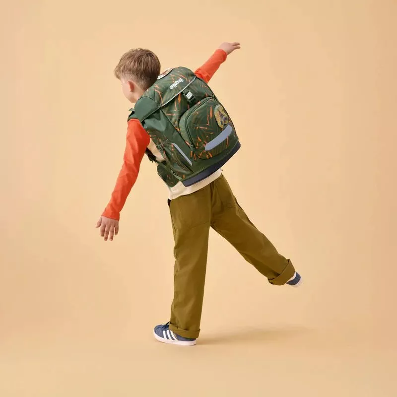 Mimoriadne ergonomický, superľahký a ultra pružný! Taký je školský batohErgobag Flex, ktorý zostáva verný osvedčenému ergonomickému systému, ale váži iba 870 gramov. Rovnako akoErgobag Prime má aj tento batoh posuvný chrbtový systém, vďaka ktorému rastie spolu s deťmi po celú dobu prvých ročníkov základnej školy - od 100 do 150 cm ich výšky. S extra veľkým objemom ponúka dostatok miesta na všetko, čo deti v škole potrebujú, a napriek tomu zostáva ultraľahký a flexibilný. Praktické predné a bočné vrecká a múdre vnútorné prepážky pomáhajú deťom udržať poriadok vo svojich veciach.