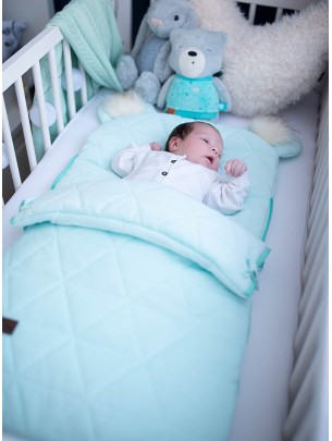 Spací pytel 6v1 Triangles Aquamarine je skvělou vychytávkou pro miminka. Využijete ho v hlubokém kočárku, autosedačce a postýlce. Má univerzální velikost 80 x 45 cm a pasuje do všech kočárků a autosedaček. Vhodné pro děti od narození do 1 roku.