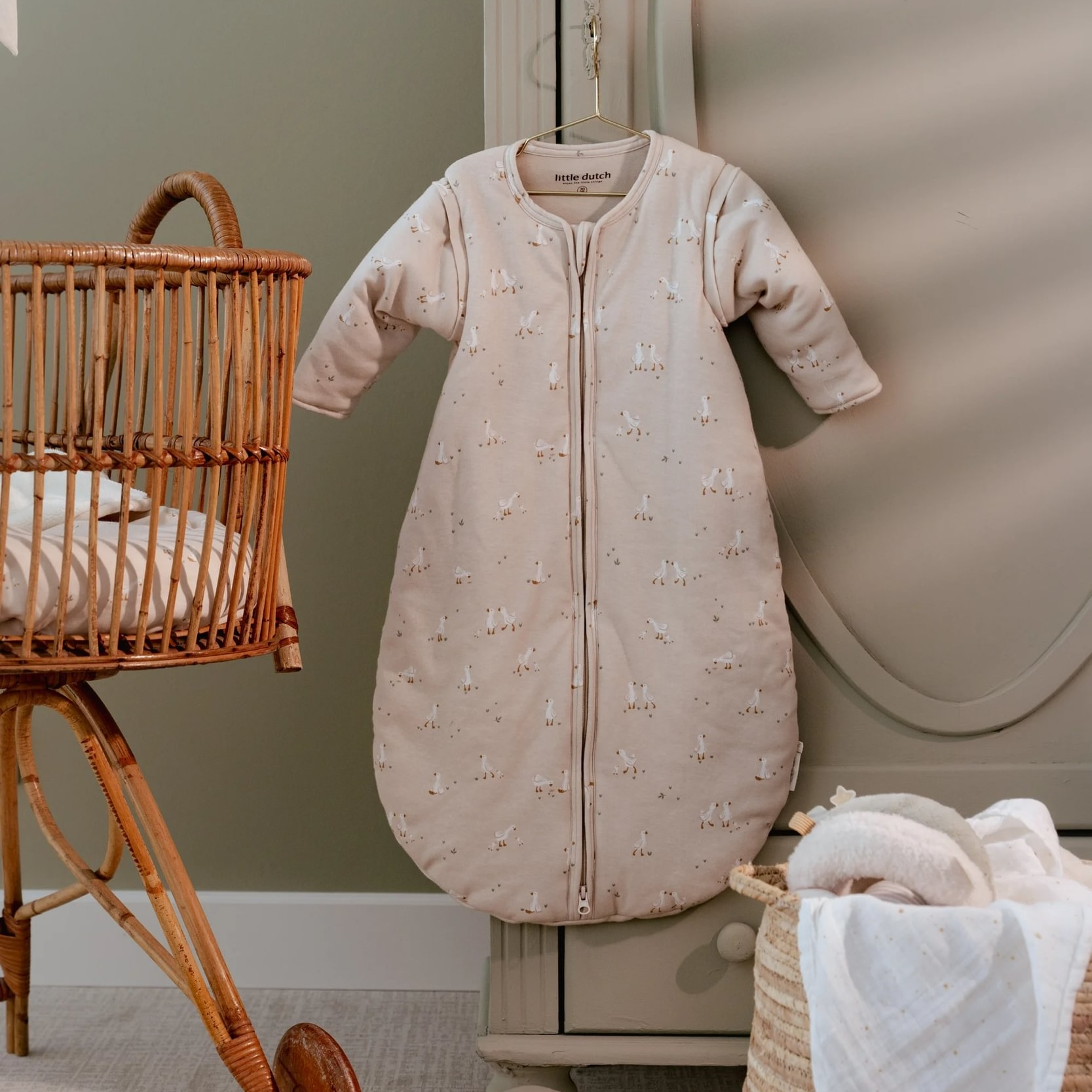 Spací vak je súčasťou dizajnovej kolekcie textilných doplnkov Little Dutch Newborn Naturals.