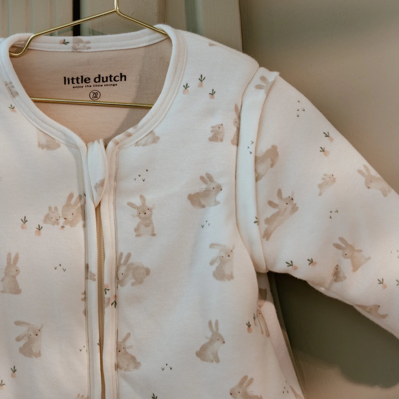 Spací vak je súčasťou dizajnovej kolekcie textilných doplnkov Little Dutch Baby Bunny.