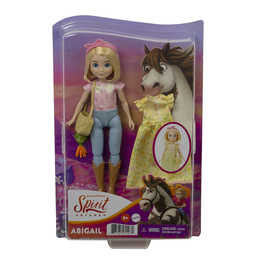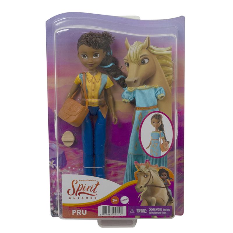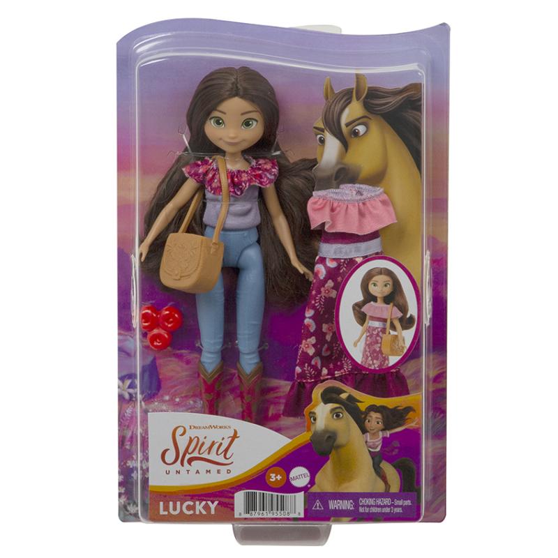 Buďte súčasťou všetkého toho priateľstva, statočnosti a dobrodružstva s animovaným filmom Spirit od DreamWorks! Sortiment bábik a módnych doplnkov Spirit Happy Trails Doll & Fashion ponúka výber z bábik Šťastíčko, Abigail alebo Pru, každej oblečenej v roztomilom typickom oblečení. Každá bábika sa dodáva aj s ďalšími šatami, kabelkou a doplnkami. Bábiky sú veľké približne 17,78 cm a sú vybavené 7 pohyblivými kĺbmi pre zábavu pri pózovaní a hraní. Každá sa predáva samostatne, v závislosti od dostupnosti. Farby a dekorácie sa môžu líšiť.