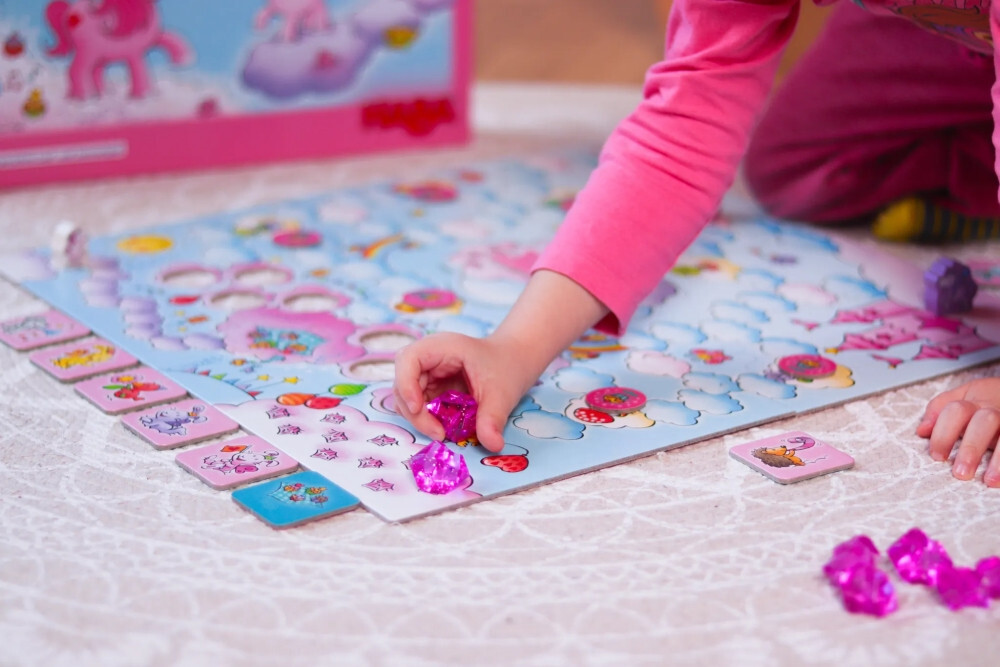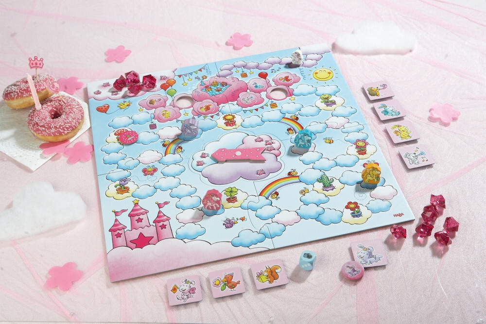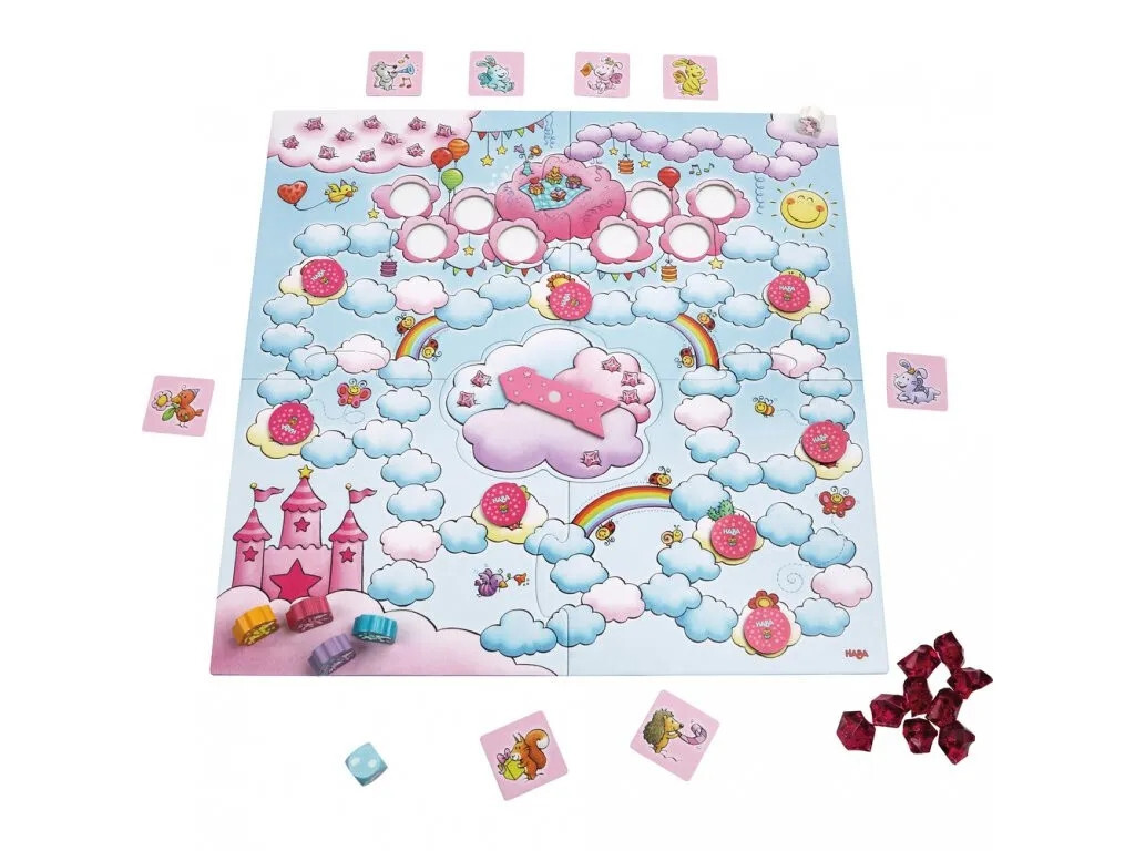Kooperatívna hra je určená pre 2 – 4 hráčov od 4 do 99 rokov. Dĺžka jednej hry je cca 15 minút. Hurá! Do Obláčikovej krajiny prichádza nový jednorožec menom Rosalie! Jednorožce Trblietavé šťastie, Hviezdny prach, Čarovná kvetinka a Magický vír chcú malú Rosalie skvelo privítať a usporiadať veľkú uvítaciu oslavu. Pozvali všetkých svojich priateľov a zhromažďujú veľké obláčikové kryštály. Musia sa ale poponáhľať, pretože všetko má byť pripravené skôr, než na večierok dorazí malá Rosalie. Obsah hry:4 jednorožce: Trblietavé šťastie (tmavoružový), Hviezdny prach (žltý), Čarovná kvetinka (fialový), Magický vír (tyrkysový), 1 malý jednorožec Rosalie (ružový), 1 kocka, 1 herná doska s rotujúcou šípkou, 8 guľatých dielikov priateľov, 8 štvorcových dielikov priateľov, 10 obláčikových kryštálov, 1 pravidlá hry.