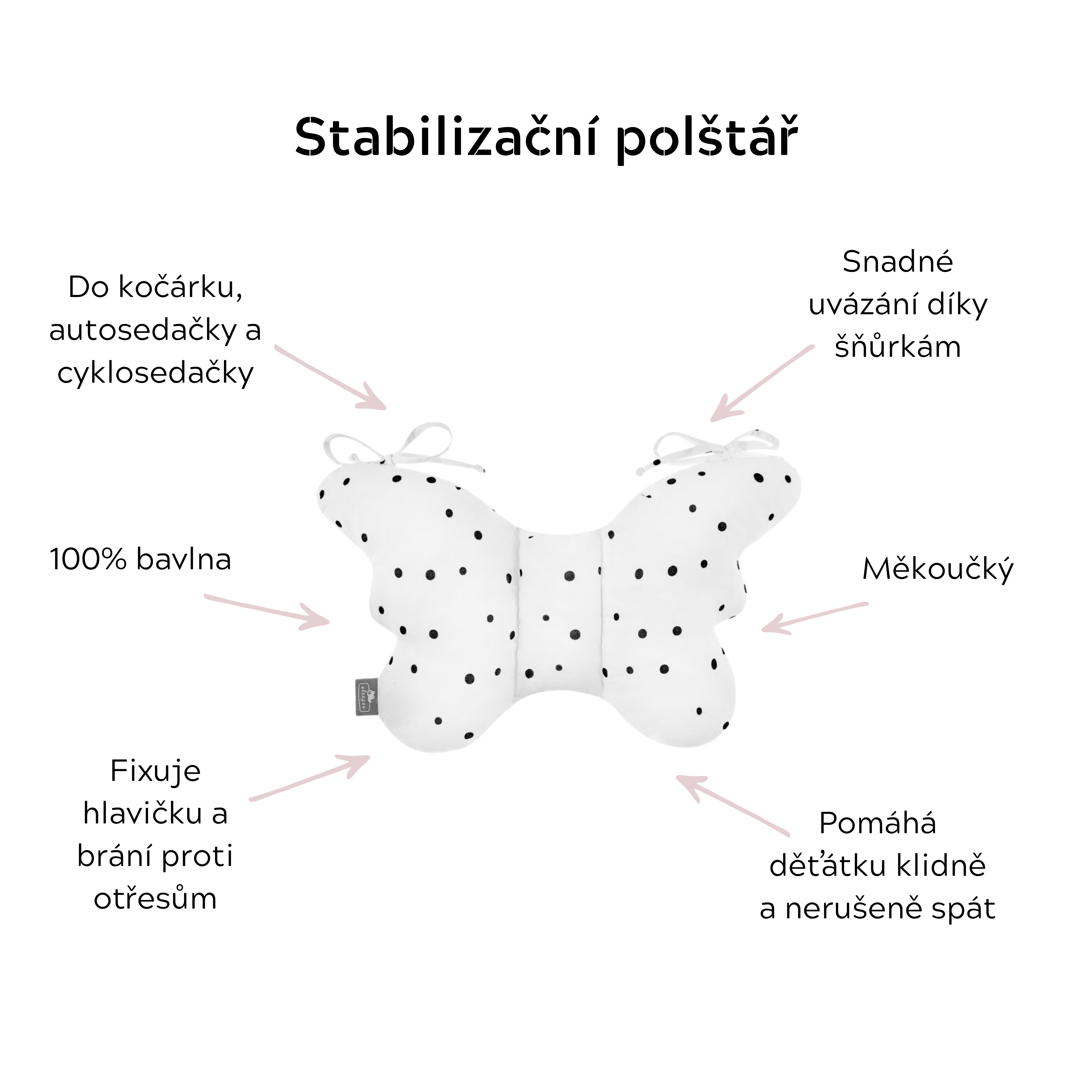 Stabilizační polštářek ve tvaru motýlka Sleepee Butterfly pillow Ivory Forest poskytuje oporu hlavičky dítěte a výrazně eliminuje otřesy. Využijete ho v kočárku, autosedačce nebo v cyklosedačce na vašich výletech na kole.