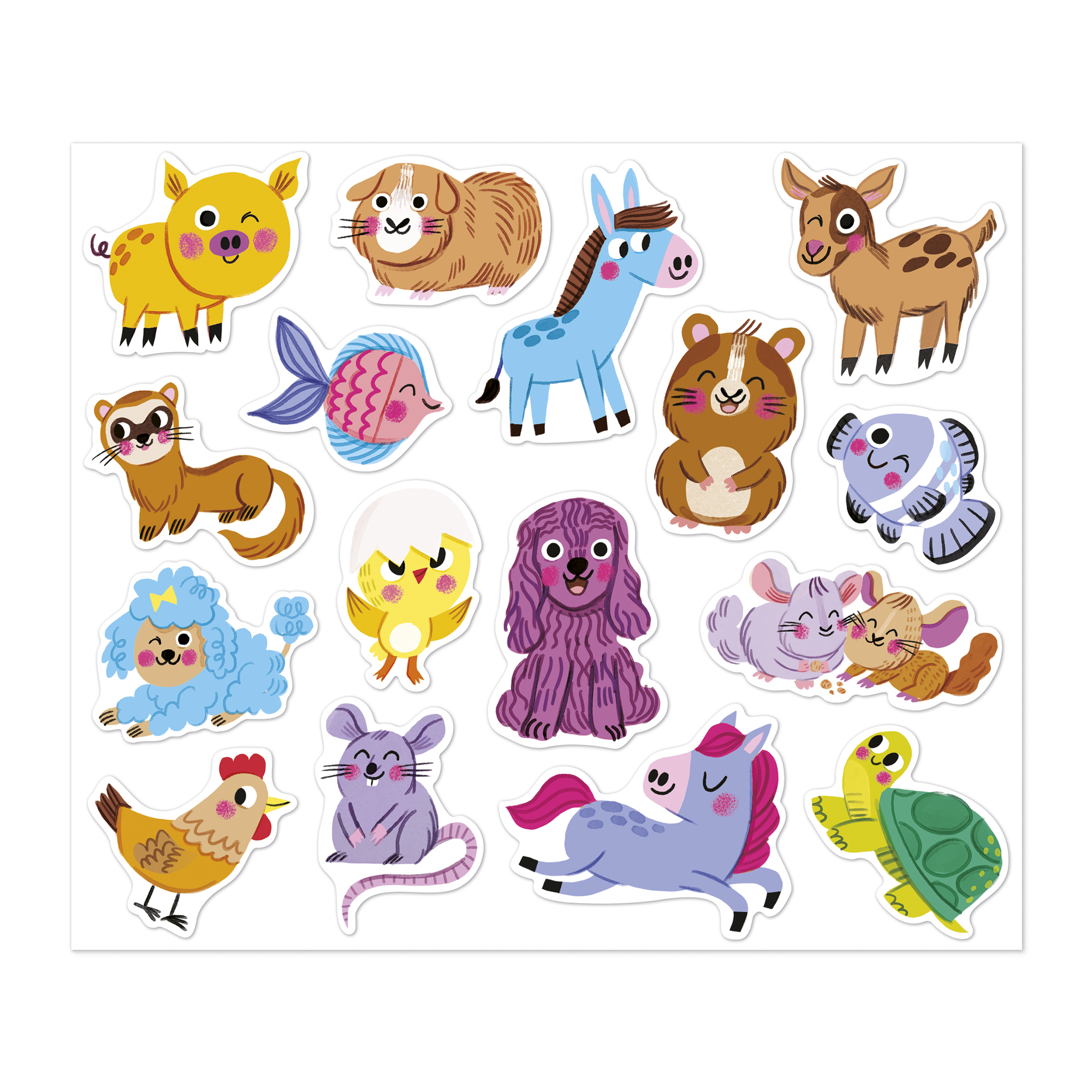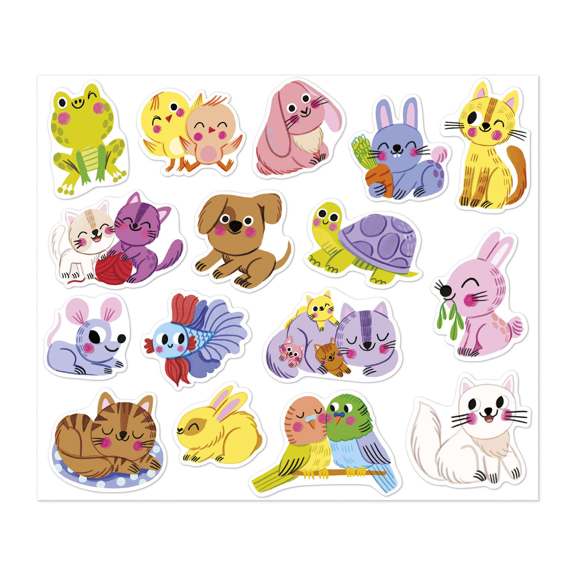 Získajte viac informácií o domácich miláčikoch! Táto knižka s nálepkami v tvare psa obsahuje celkovo 100 veľkých nálepiek s tematikou domácich miláčikov, rozložených na viacerých listoch. Nálepky bez orezávania perfektne padnú na 6 listov, vďaka čomu sa ľahšie uchopia. Každý list obsahuje 16 nálepiek. Ich veľkosť bola navrhnutá špeciálne pre ruky detí vo veku 18 mesiacov a viac: každý list má rozmery 20 x 17 cm. Táto aktivita pomáha rozvíjať jemnú motoriku a kreativitu. Je ideálna pre deti vo veku 18 mesiacov a viac.