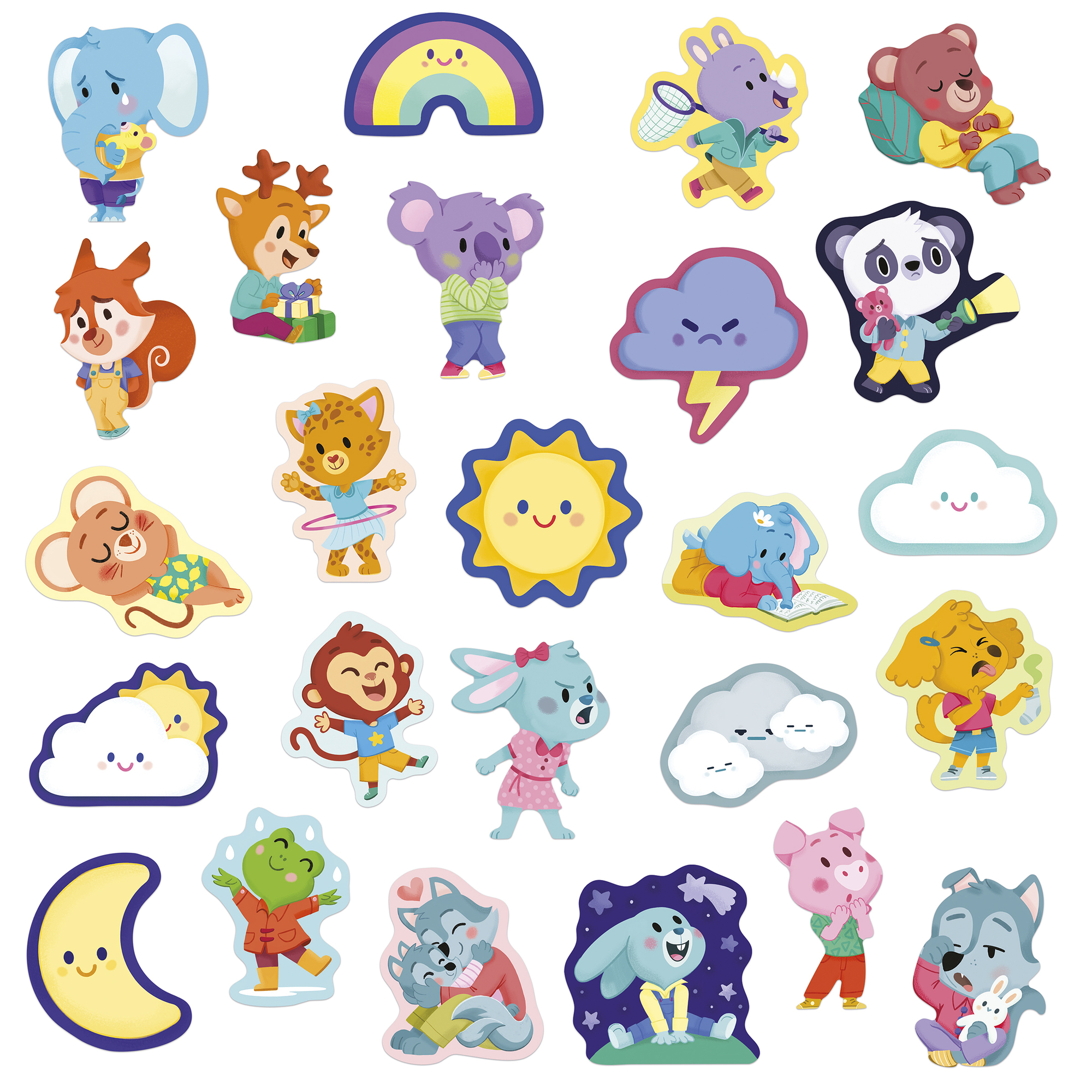Naučte sa rozpoznávať svoje emócie! Táto drzá knižka s nálepkami v tvare tigrieho mláďaťa obsahuje 100 nálepiek s tematikou emócií. Zadná strana každej nálepky je predrezaná do polovice, aby sa ľahšie držala. Veľkosť nálepiek bola špeciálne navrhnutá pre ruky detí vo veku od 3 rokov: merajú približne 5 x 5 cm (max.). Na 25 z nich nájdete pekný efekt zlatej fólie. Táto aktivita pomáha rozvíjať jemnú motoriku a kreativitu. Je ideálna pre deti vo veku od 3 rokov.