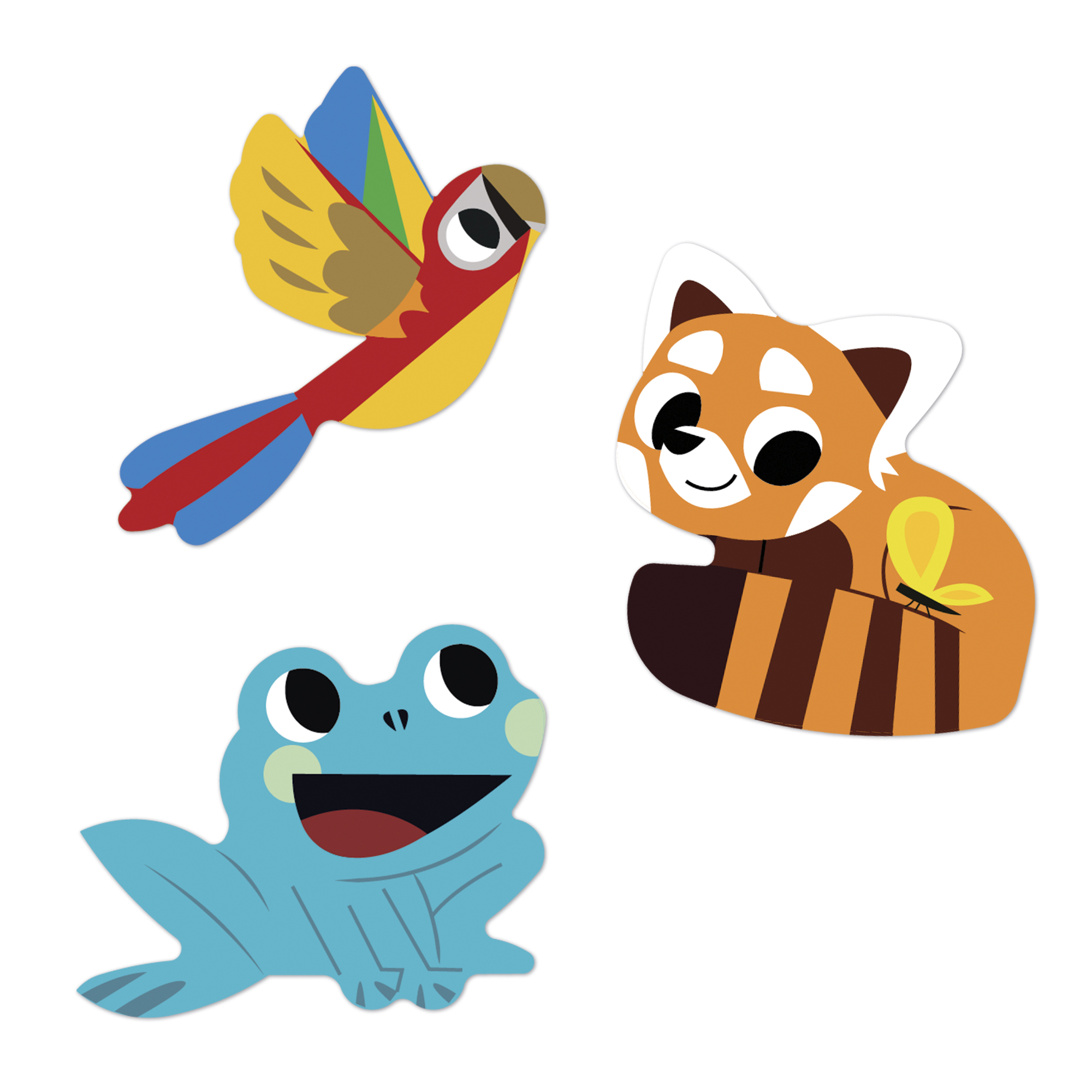 Vitajte v džungli! Táto knižka s nálepkami v tvare pandy obsahuje 100 nálepiek s motívom exotických zvierat. Zadná strana každej nálepky je predrezaná do polovice, aby sa ľahšie držala. Veľkosť nálepiek bola špeciálne navrhnutá pre ruky detí vo veku od 3 rokov: merajú približne 5 x 5 cm (max.). Niektoré nálepky majú pekný efekt zlatej fólie. Táto aktivita pomáha rozvíjať jemnú motoriku a kreativitu. Je ideálna pre deti vo veku od 3 rokov.