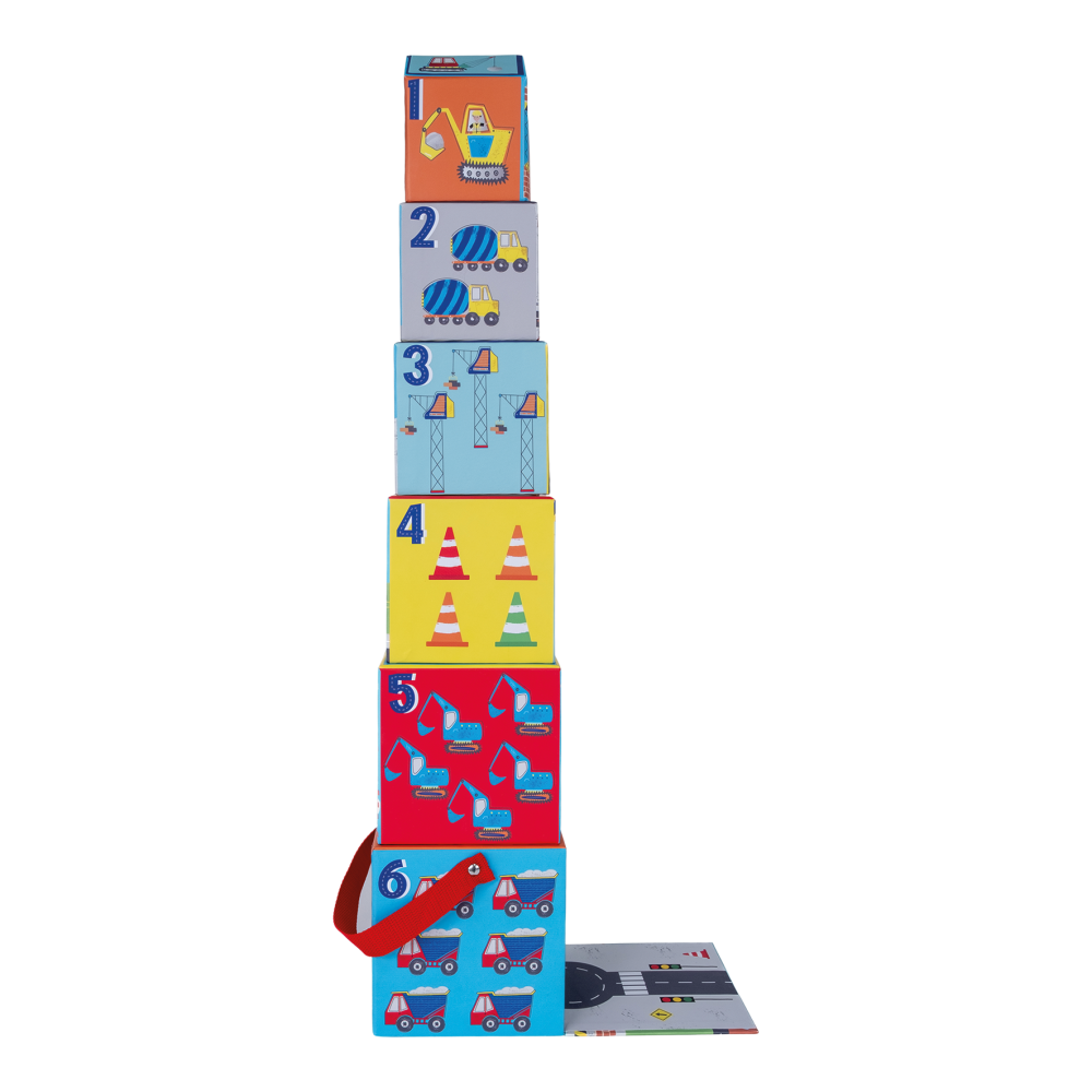 Obsahuje 3 drevené dieliky a 6 stohovacích kociek.