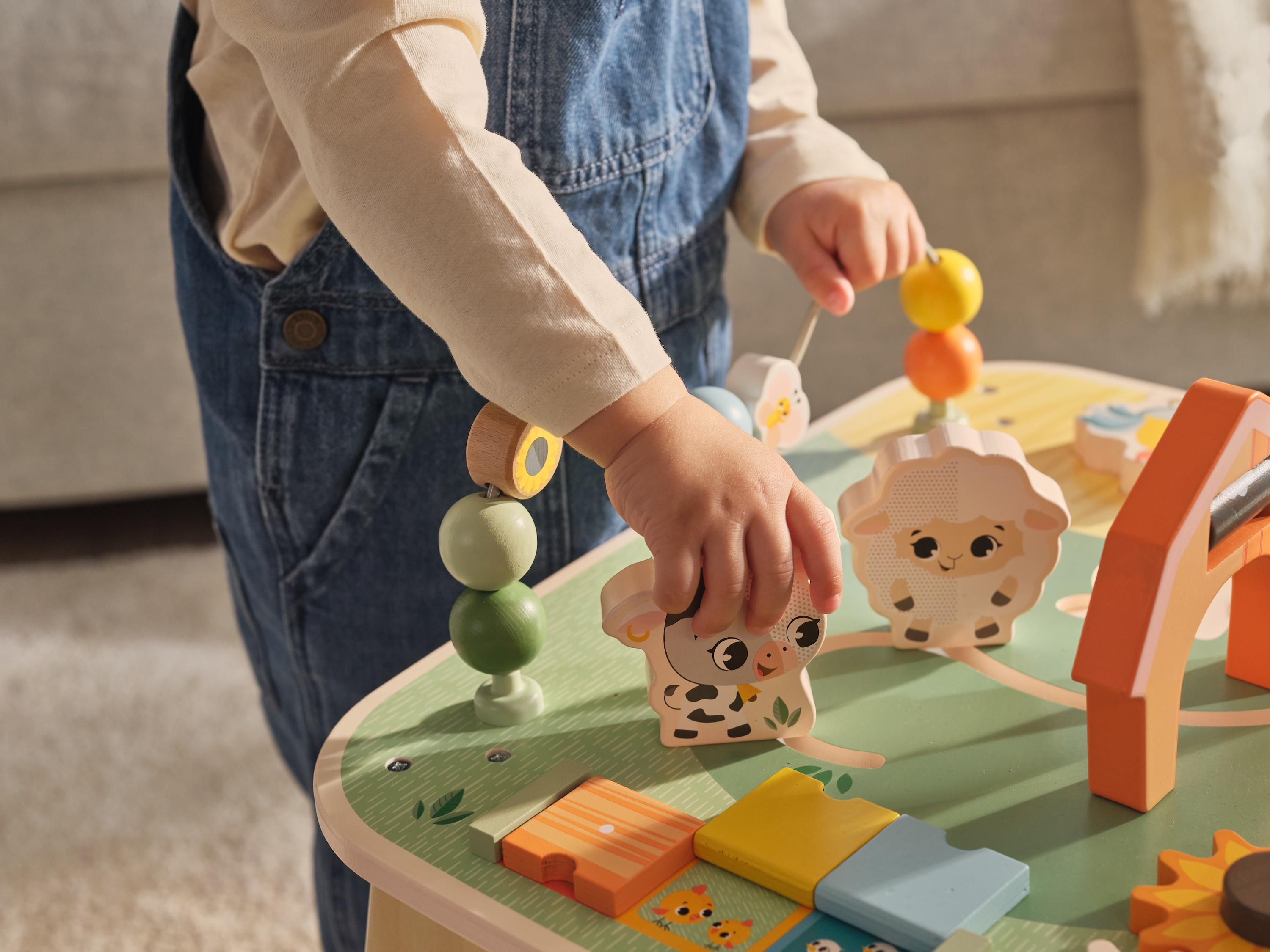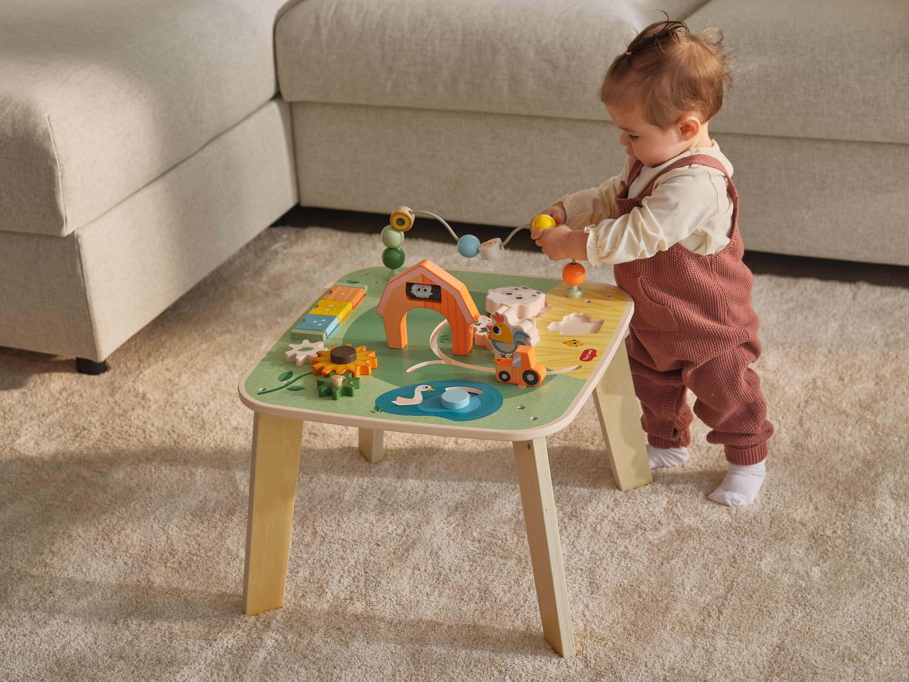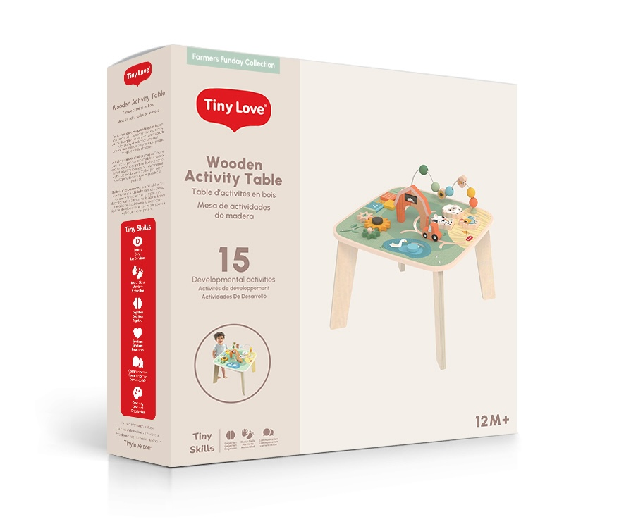 Dřevěný stolek s aktivitami Tiny Love je skvělá hračka pro malé objevitele, která nabízí spoustu možností, jak si hrát, zkoumat a učit se. Na jednom místě kombinuje různé pohyblivé prvky, vkládání a skrytá překvapení – dítě si tak přirozeně trénuje jemnou motoriku, koordinaci ruka–oko, soustředění i první logické uvažování. Stolek s krásnými motivy ze života na farmě podporuje samostatnou hru, ale zároveň je ideální i pro společné chvíle s rodiči nebo sourozenci.