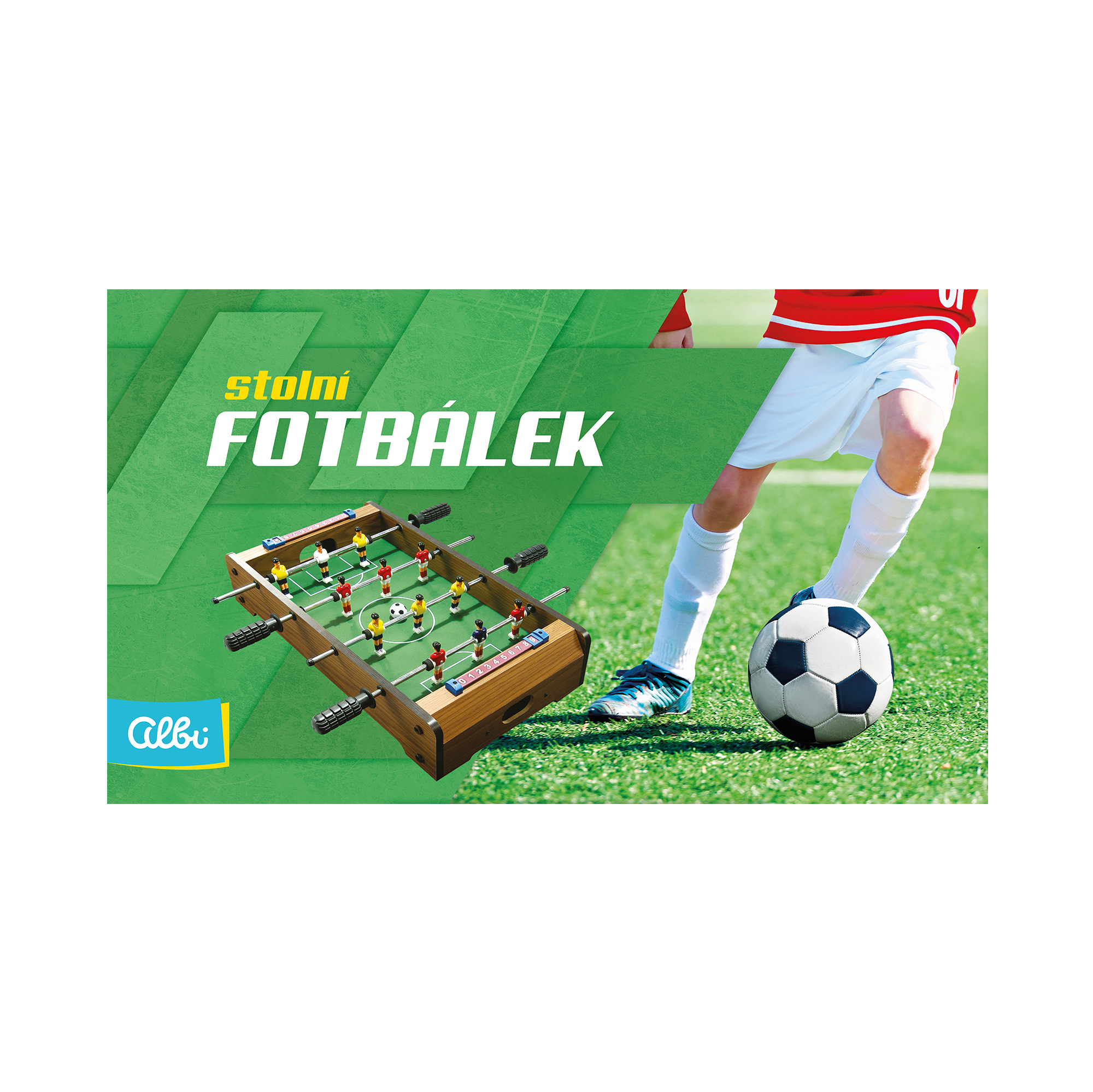 Zahrajte si futbal u Vás doma! Dobre sa ovláda – držadlá sa ľahko otáčajú a jednoducho si zahráte ako na stole, tak aj na zemi. Futbal sa predáva rozložený, ale je jednoduché ho zložiť. Návod na montáž je priložený vo vnútri v balení v češtine, slovenčine a poľštine. Rozmery: 51x31x10,5 cm.