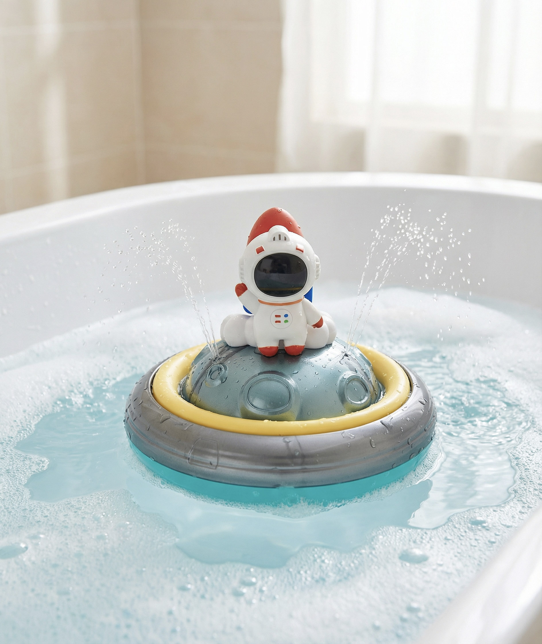 Hračka podporuje zmyslové vnímanie, predstavivosť a motivuje deti, aby si kúpanie spájali s príjemným zážitkom. Astronaut Raketa funguje na batérie, ktoré nie sú súčasťou balenia. Hračka bezpečná a vhodná pre deti od 3 rokov. Ide o výborný darček pre malých fanúšikov vesmíru, ktorí milujú vodné hry a radi sledujú, ako prúdy vody striekajú do všetkých strán.