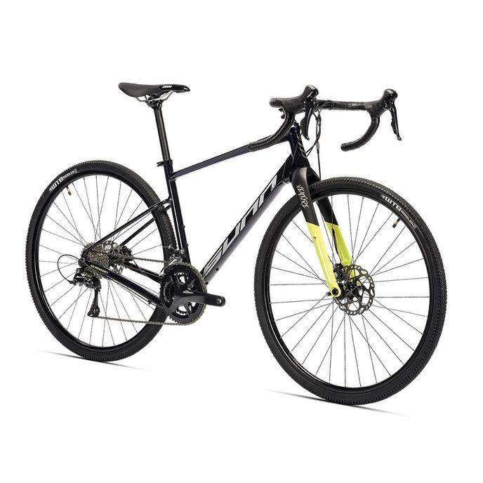 Venture S2, cenovo dostupný Gravel s ľahkým ale pevným hliníkovým rámom v kombinácii s karbónovou vidlicou. Pre mnohých z Vás bude použitie klasického dvojprevodníka 50/34 v kombinácii s 9 rýchlostným zadným radením 11-34 rozhodujúcim faktorom, pretože sa táto kombinácia z gravelových bicyklov vytráca. Dokážete vďaka tomu dosahovať na svojich cestách vyššie rýchlosti.